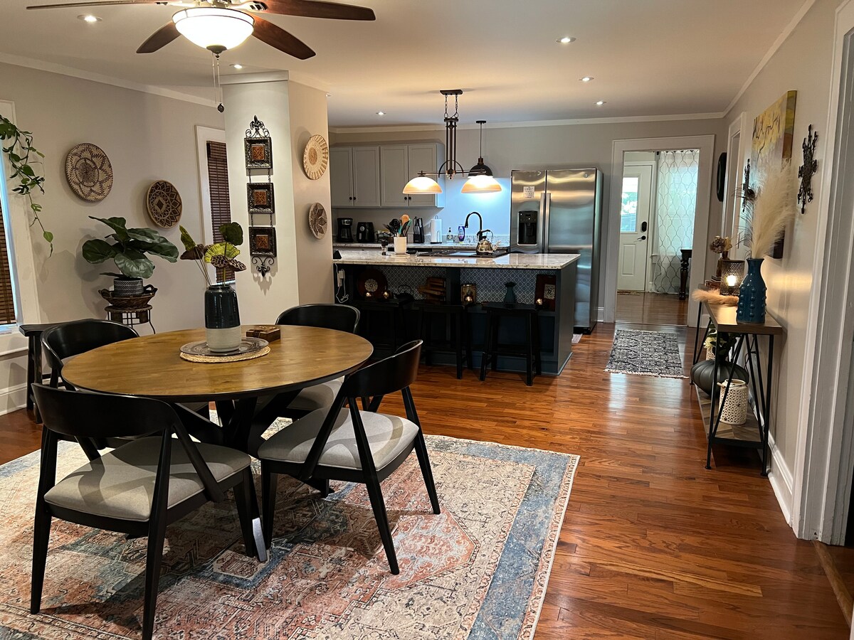 Rumah pertanian 1850 yang dipugar dengan indah di pedesaan Shelby. 30 menit ke Tryon. Satu jam ke Charlotte/Asheville. Di dekatnya terdapat kebun anggur dan GWU. 7 1/2 hektar keindahan yang tenang - duduk di tepi kolam dan memancing atau mendaki jalur yang dibersihkan ke sungai yang mengalir. Akhiri malam dengan duduk di dekat lubang api. Menampung 4 -6 orang. Rumah seluas 1600 kaki persegi dengan 2 BR, 2 Baths, den, dan ruang tamu dan dapur konsep terbuka yang indah. Kasur udara queen untuk ruang kerja. CATATAN: 6/25 ditingkatkan menjadi Starlink. Wi-Fi tidak lagi menjadi masalah.
