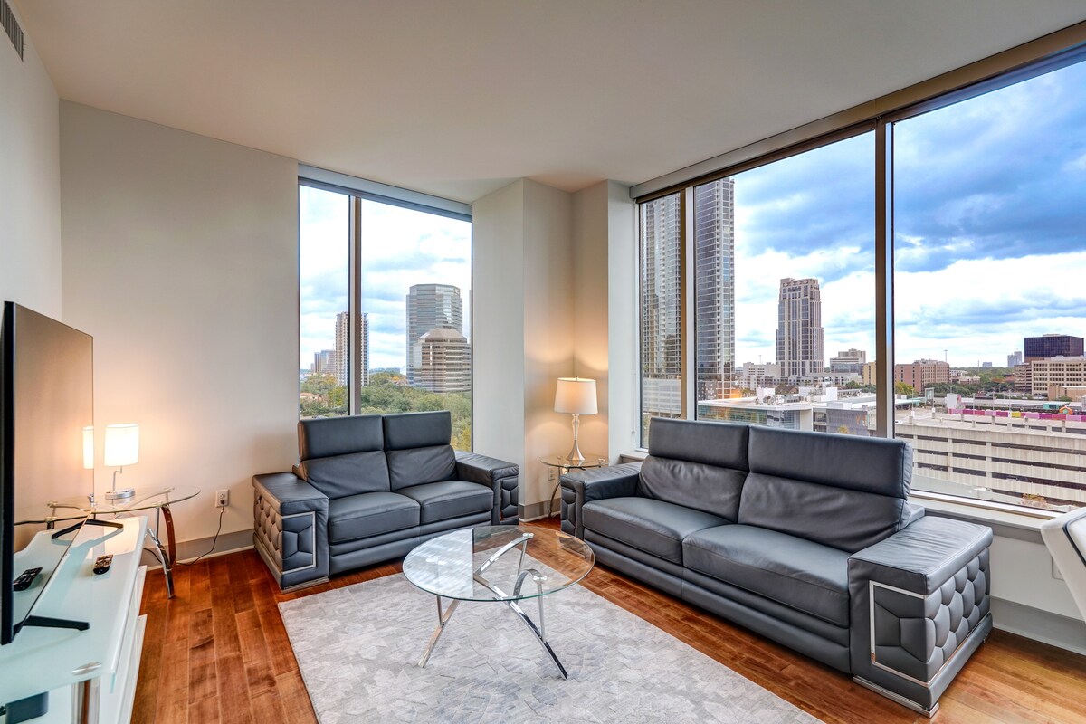 Elevated comfort for rest and focus just 10 to 13 minutes from Houston’s Texas Medical Center and NRG Stadium. Relax in this bright luxury 1BR ideal for work, medical visits, concerts, or a peaceful getaway. Enjoy fast WiFi, a dedicated workspace, a full kitchen with a curated luxe coffee station, plus premium amenities like a pool, gym, clubhouse, and courtyard. Designed for short or extended stays, this home offers a calm, thoughtfully designed space to reset and recharge after long days.