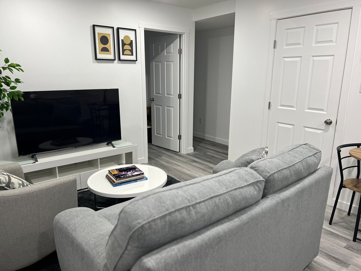 Suite bawah tanah yang baru dibangun. Nyaman, Damai, dan tempat yang membuat Anda merasa seperti di rumah sendiri. Muncul dengan Ruang Tamu di mana Anda dapat bersantai dan menonton program pilihan, Dapur yang memungkinkan Anda menyiapkan makanan cepat saji, kamar tidur yang nyaman dengan tempat tidur queen size untuk dua orang dan kamar mandi berukuran penuh. Stasiun kerja lipat jika Anda perlu melakukan beberapa pekerjaan di laptop Anda. Anda juga memiliki area halaman belakang yang bagus di mana Anda bisa bersantai seperti di rumah.