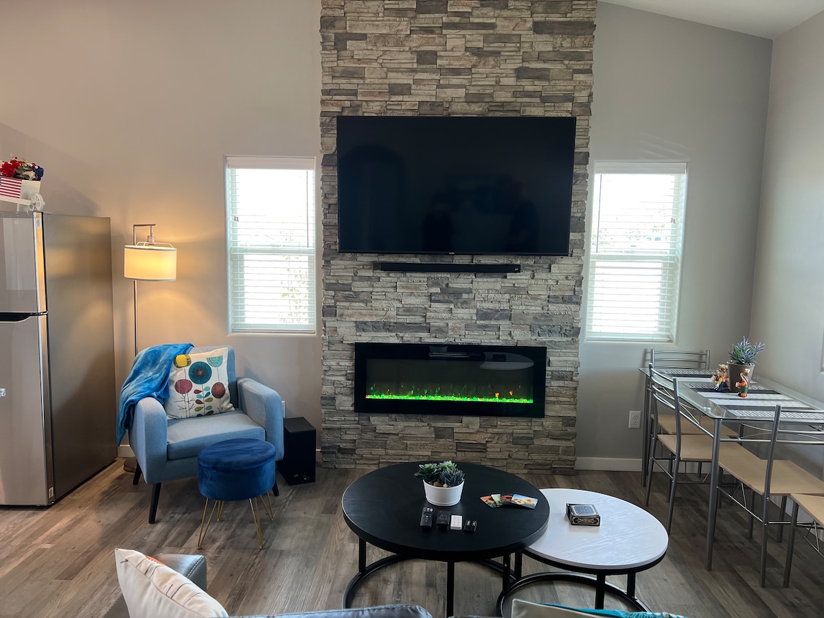 Come enjoy this quiet, bright and comfortable new 700 square feet guest house and take in the bright stars and some of Flagstaff's best trails, right out the door. Relax on a gigantic couch with a Hi-Fi stereo and a 65 inch TV. The bedroom has a king size bed and the guest house is AIR CONDITIONED. Ride your bike to downtown in 20 mins or drive in 12 to enjoy Flagstaff's fantastic downtown. A private deck with plenty of sunshine and a grill compete your get away.