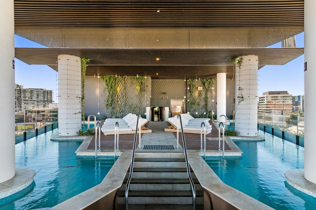 Nikmati apartemen modern di lantai 19 di pusat Fortitude Valley 🏙️, yang menawarkan pemandangan kota dan Story Bridge yang luas dari atas cakrawala. Beristirahatlah dengan nyaman di tempat tidur yang sangat nyaman dengan seprai baru berkualitas hotel, dan tetap terhubung dengan Wi-Fi yang cepat dan andal. Tamu dapat mengakses kolam renang infinity yang indah 🏊 dan pusat kebugaran besar dengan pemandangan kota panorama 💪. Beberapa langkah dari RNA Showgrounds, tempat makan di Valley, pusat perbelanjaan, dan stasiun kereta api terdekat 🚆, dan CBD hanya berjarak beberapa menit.