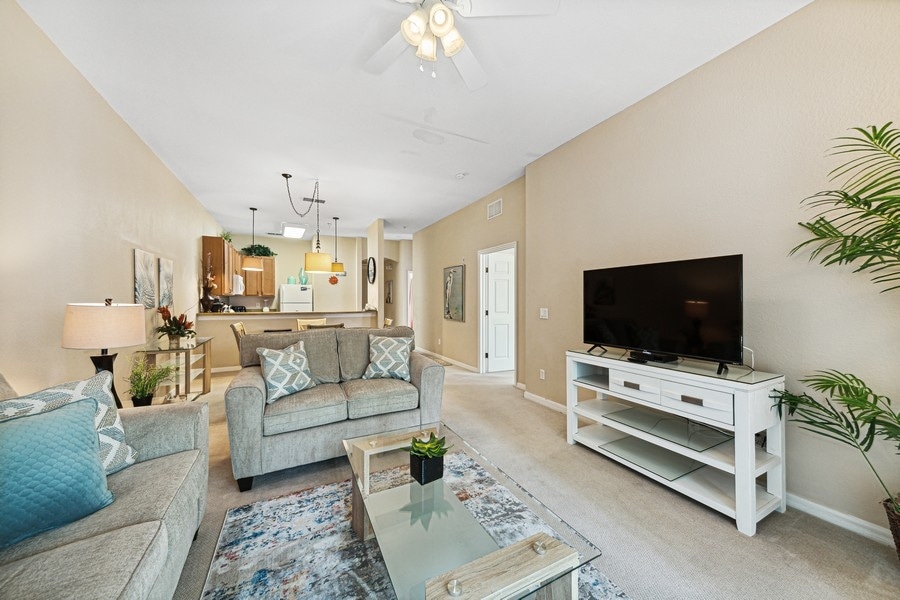 Escape to this gorgeous condo, perfectly located near Disney parks! A large living area, a full kitchen & dining space, it’s designed for relaxation and convenience. Two bedrooms include a Mickey-themed room with a queen bed & 2 bunks, the other room a full King ensuite & two full bathrooms. Enjoy a covered patio i for quality time with family and friends. Best of all, you’ll have free access to two fantastic community waterparks with onsite dining and bars—your perfect vacation awaits!