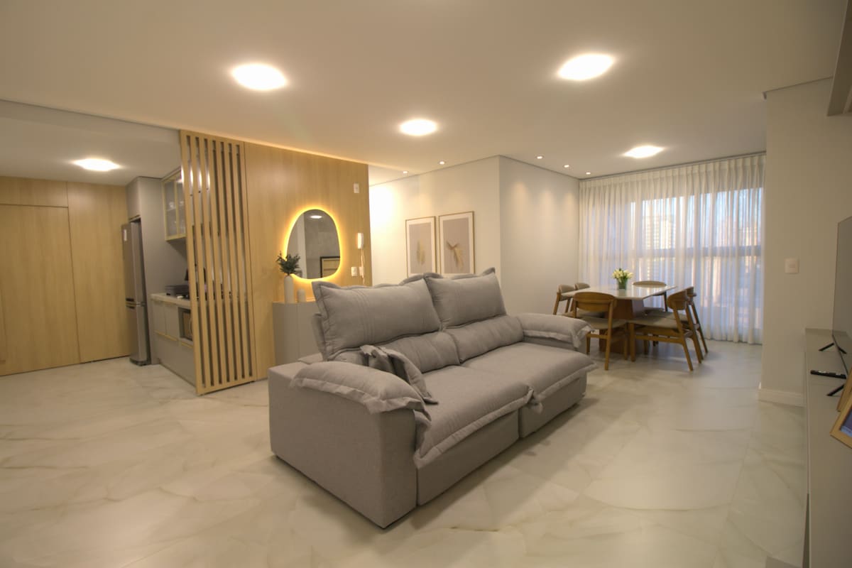 Apartemen baru, penuh perhatian dan dihiasi dengan kasih sayang yang luar biasa bagi saya, mulai dari pilihan furnitur hingga lukisan yang menghiasi ruangan. Tempat yang nyaman dan beristirahat, untuk pasangan, keluarga, atau wisatawan tunggal. Terletak di pusat Foz, di samping pasar dan apotek, dengan kafe, restoran, pusat kebugaran dan bar satu blok jauhnya. Apartemen saya memiliki semua fasilitas yang diperlukan agar pengalaman menerima tamu Anda tak terlupakan di Foz do Iguaçu!