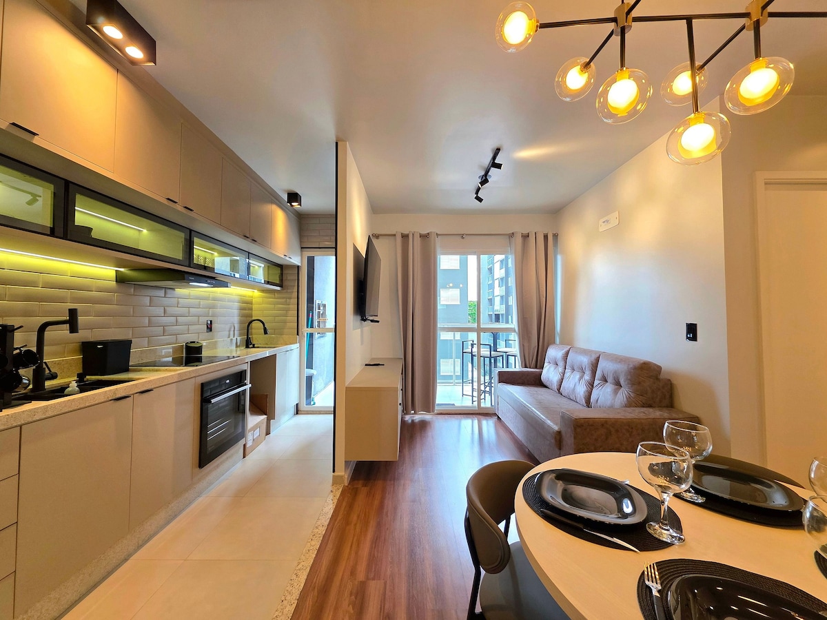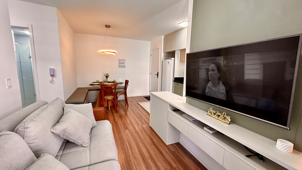 Apartemen Pusat di Foz do Iguaçu, dengan semua fasilitas rumah Anda. Luas, nyaman dan pemandangan indah. Lihat semua fasilitas yang kami tawarkan: Mesin cuci, Mesin cuci piring, gudang anggur, filter air listrik, oven listrik, penggoreng udara, wajan listrik, Blender, pengering rambut, setrika, dan dapur lengkap pada peralatan makan. Liburan tenang Anda dimulai di sini. Jadilah orang pertama yang menikmati tempat ini, apartemen baru.