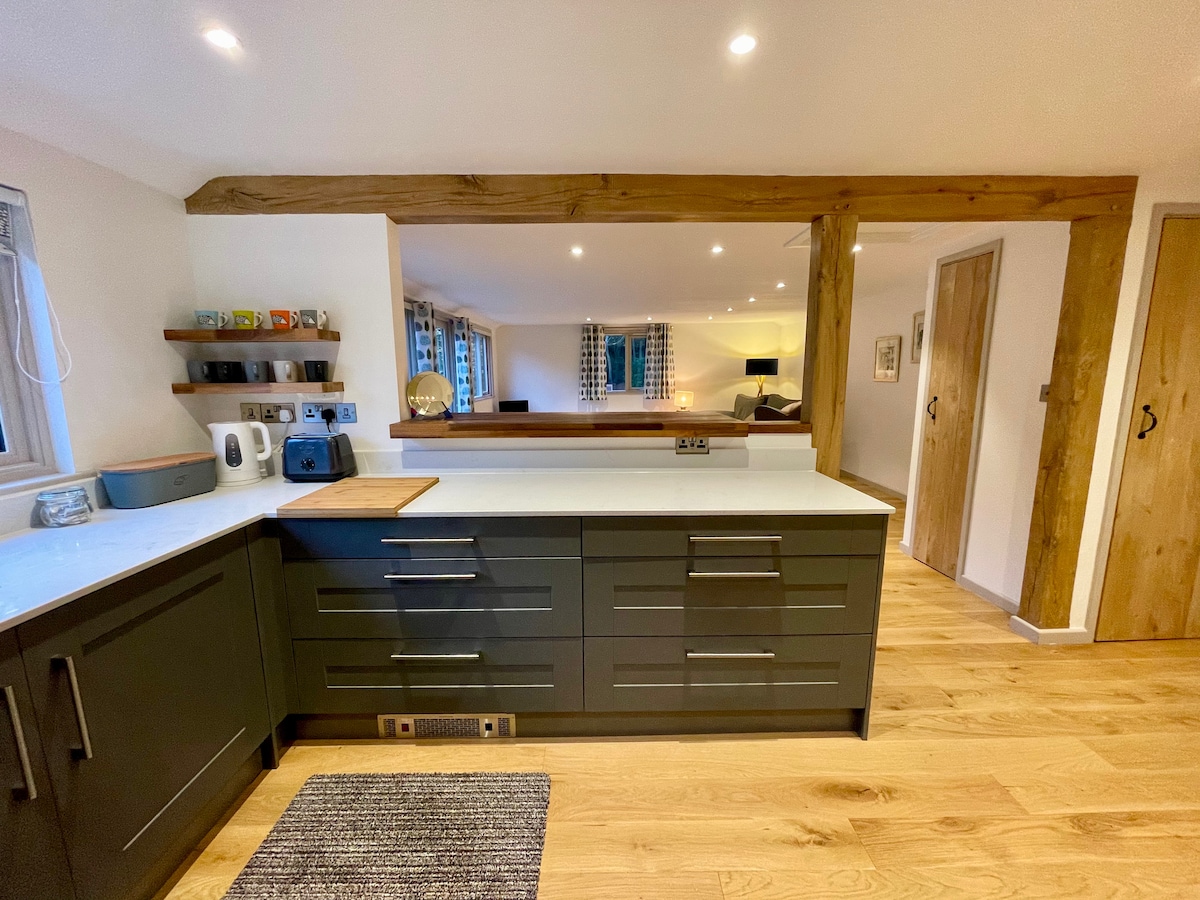 Lumbung studio kami yang terinspirasi chalet, dengan langit - langit berkubah dan balok kayu ek, ringan dan lapang di musim panas dan sangat hangat dan nyaman di musim dingin, dengan pemanas di bawah lantai. Tempat ini benar - benar mandiri, dengan pintu masuk terpisah dari rumah keluarga yang berdekatan. Dengan tempat tidur superking yang mewah (atau dua kembar), tempat tidur sofa, WiFi cepat tanpa batas, dan HDTV, Anda yakin akan masa inap yang santai dan ramah dalam suasana ramah keluarga di pedesaan East Sussex.
