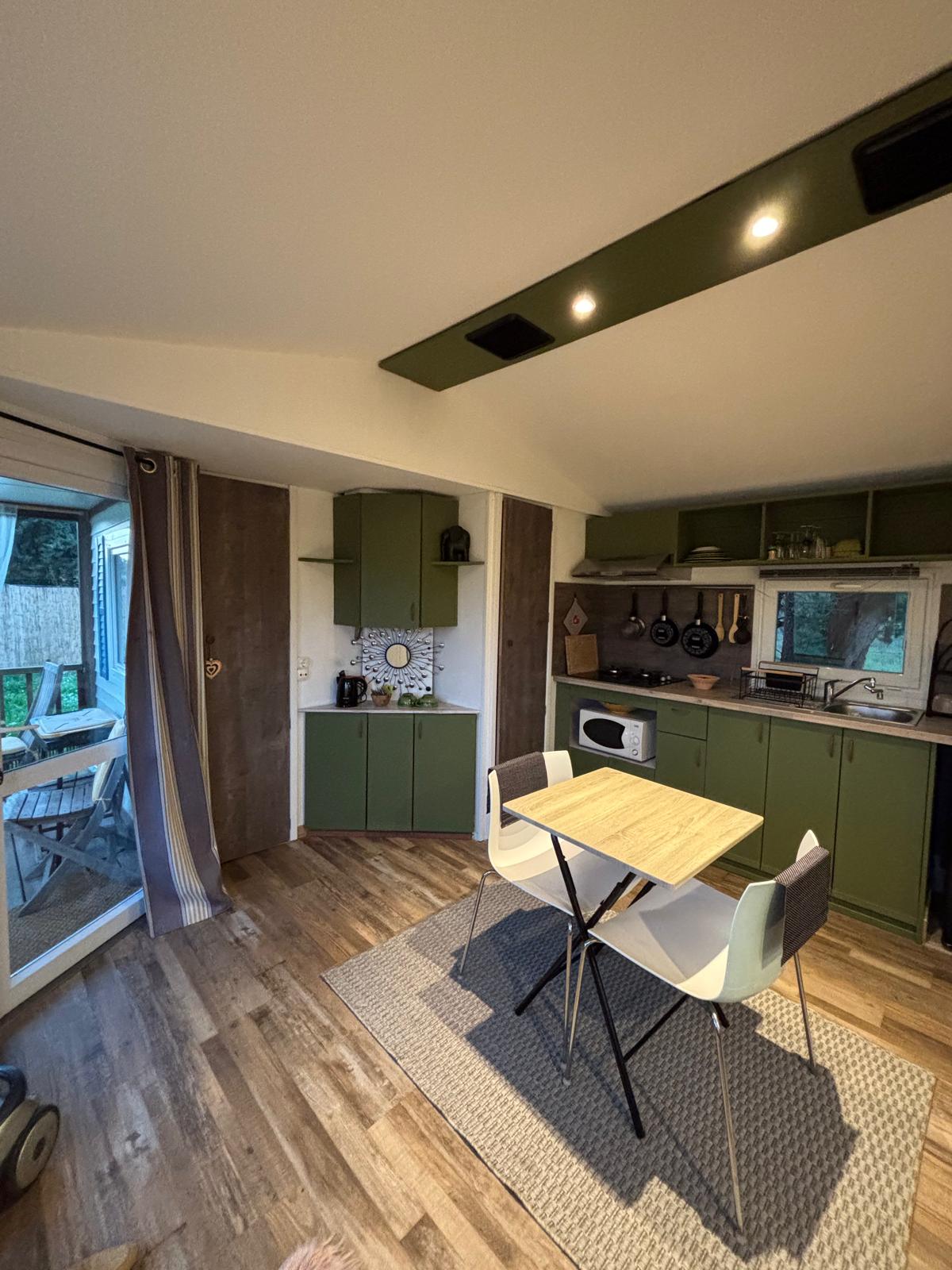 bungalo " la Bohème" memiliki kapasitas untuk 4 orang, memiliki dua kamar tidur, yang terdiri dari, tempat tidur double, dan tempat tidur 90. seprai rumah disediakan, tempat tidur dan kursi tinggi untuk bayi. Di ruang tamu terdapat sofa konvertibel Skandinavia untuk 2 orang, meja TV (wifi), kursi, dapur kecil yang dilengkapi dengan microwave, kompor induksi, kulkas vintage, pembuat kopi Senseo ( dengan pod), ketel. Kamar mandi ini cukup luas