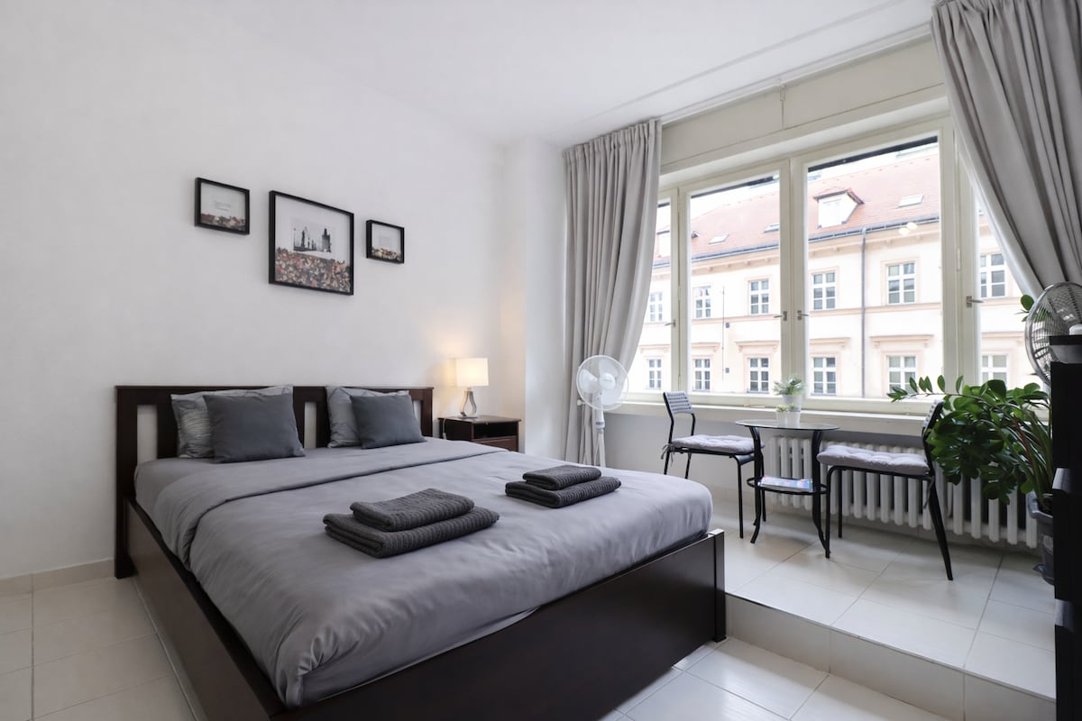 Apartemen yang nyaman dan cerah ini berada di pusat sejarah Praha. Terdiri dari satu ruangan yang mencakup tempat tidur double besar, unit penyimpanan, dan dapur dengan kulkas, ketel, peralatan makan, mesin cuci piring, dan peralatan dapur lainnya. Ada pula kamar mandi pribadi. Apartemen ini dirancang dengan gaya yang sangat modern dengan lantai kayu dan jendela besar dengan tirai. Bagian terbaiknya adalah pemandangan – Anda memiliki Menara Balai Kota Kota Tua tepat di luar jendela Anda!