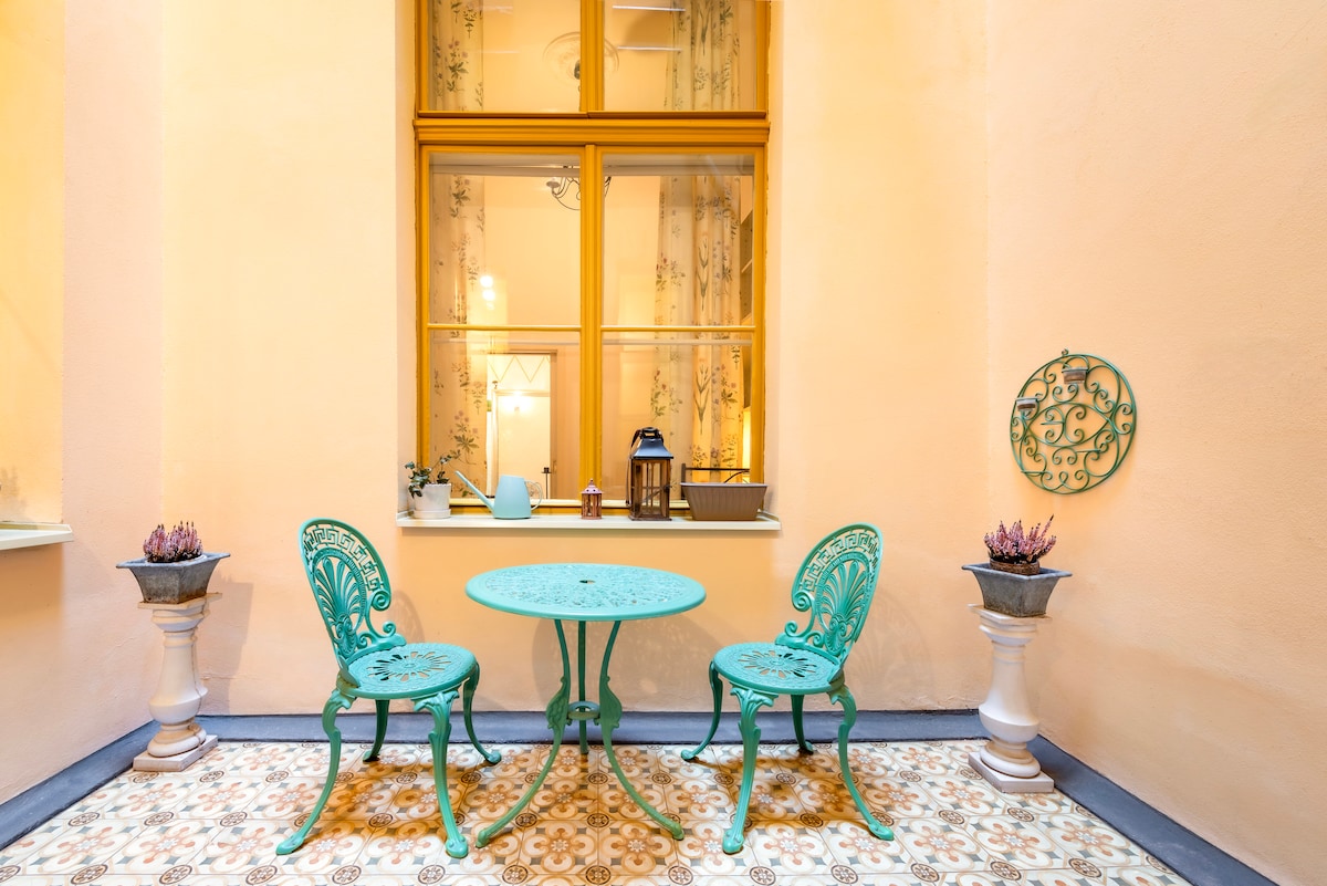 ★ Historic House ★ Original Furniture and Art ★ Kitchen High - ★ speedWiFi ★ Rasakan suasana asli bangunan barok di pusat kota Praha. Apartemen dengan perabot dari 'fin de siècle '' epoch memiliki kamar mandi besar, kamar mandi dan konservatori. Cukup besar untuk empat tamu, dapur kecil modern dan lengkap, tempat tidur berukuran king, dan sofa konvertibel. Mesin cuci/pengering, Wi - Fi, TV Netflix disediakan. Semoga karya seni asli dan permadani Persia dari koleksi keluarga akan membuat masa menginap Anda menyenangkan.