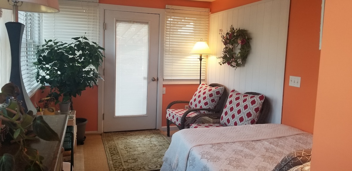 Ruang kecil yang cerah, terhubung ke rumah utama, namun memiliki pintu masuk sendiri. Kamar memiliki tempat tidur queen, kamar mandi lengkap dengan bak mandi, mesin pembuat kopi gaya Keureg, kulkas mini; tanaman hidup di kamar, 7 menit berkendara ke Bethany Beach. View and access to backyard seating, chimnea, No WIFI, no TV. Peralatan pantai tersedia. Tidak ada akses ke atau dari rumah utama, tetapi beberapa suara teredam dapat didengar di siang hari, termasuk anjing kecil. Check in mandiri dengan kunci, tapi tidak ada check in terlambat, ty!