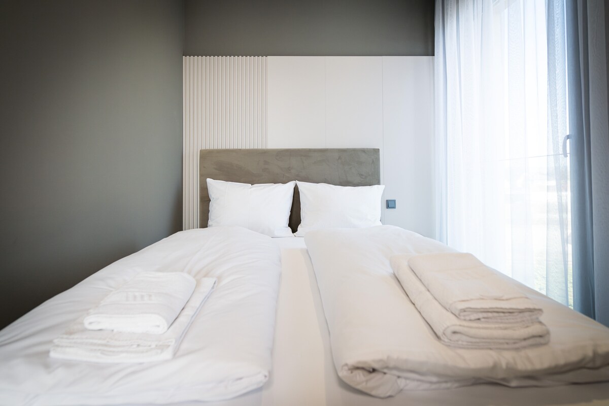 Apartemen satu kamar tidur bisa menampung hingga lima orang di 28 m². Di ruang tamu terdapat sofa yang dapat diubah menjadi tempat tidur double yang nyaman, kursi lengan yang dapat diubah menjadi tempat tidur single, area makan, dan dapur kecil lengkap dengan mesin kopi, mesin cuci piring, dan microwave. Di kamar tidur terdapat double bed. Kamar mandi modern dilengkapi dengan shower, toilet dan hairdryer.