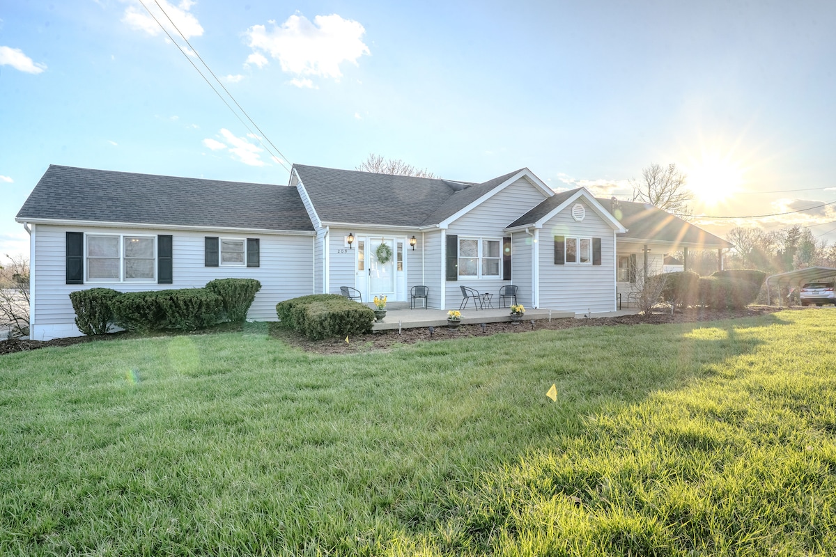 Bersantai bersama seluruh keluarga di tempat menginap baru yang damai ini. Di Heart of the Trails, Anda berada tepat di tengah - tengah semua jalur bourbon & Kilang Anggur Di Frankfort & menit ke Lawrenceburg & Versailles. Kami berada tepat di samping jalan raya dan bisa berada di kota - kota di sekitarnya dalam beberapa menit! Anda juga memiliki taman air Juniper Hills dengan barbekyu taman bermain & bermain golf. Kami juga memiliki pusat pendidikan peternakan permainan untuk mengunjungi semua hewan & memancing. Juga tur bourbon ke mana - mana. Semua rumah satu lantai.