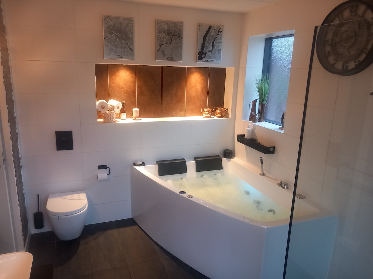 Bawa seluruh keluarga ke rumah menakjubkan ini dengan banyak ruang untuk bersenang - senang dan rewel. Berikut adalah pemandian hutan belantara, ruang aktivitas dengan biliar, tenis meja, Playstation 5, dinding panjat, dart, dll. Dekat dengan pantai yang bagus, hutan untuk bersepeda gunung, Kebun Binatang dan Legeland. Ada pemanas teras, sauna, dan pancuran luar ruangan. 4 kamar yang indah, dua kamar mandi lezat. Furnitur berkualitas dan stasiun pengisian daya listrik Seprai dan handuk bisa disewakan, jika tidak, Anda harus membawanya sendiri.