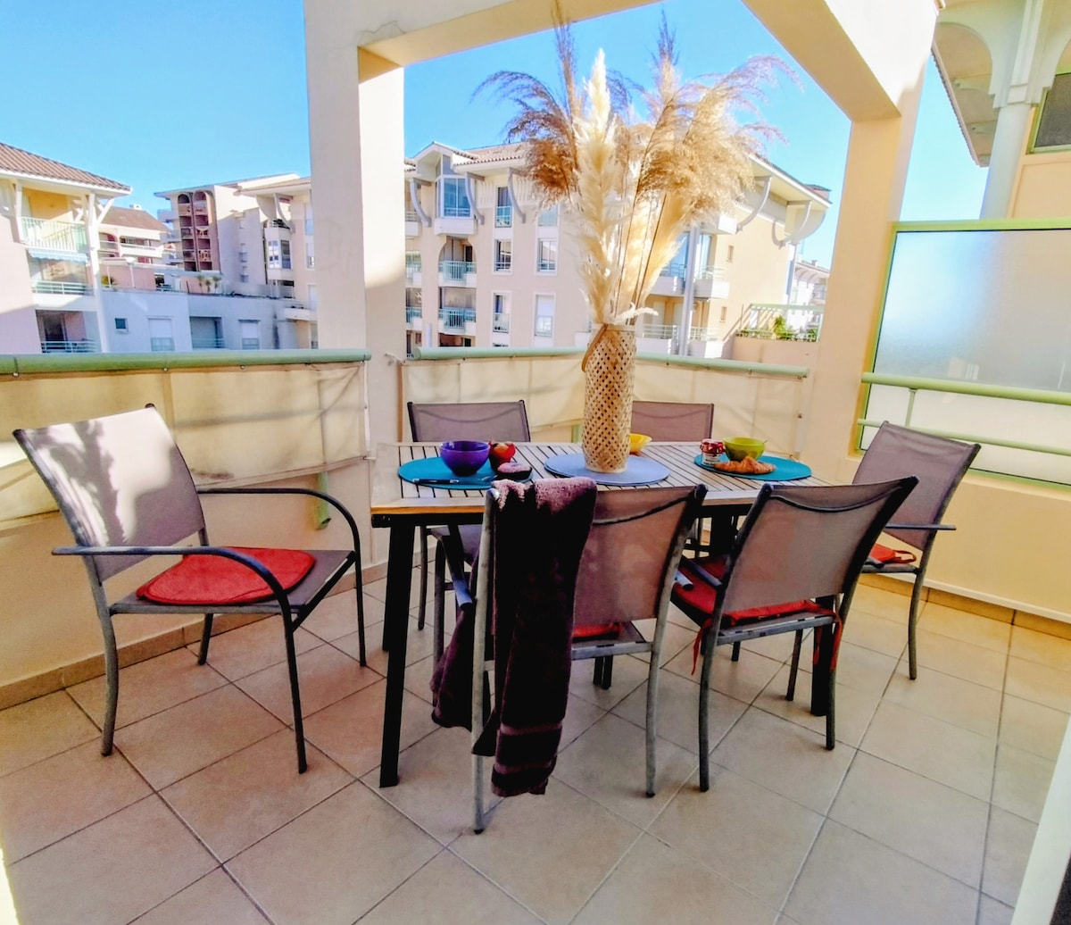 👉 ⭐ Logement noté 5★ par les voyageurs 🌴 À seulement 5 minutes de la plage, profitez d’un séjour sans stress à Port Fréjus Installez-vous dans cet appartement lumineux avec terrasse, idéal pour les familles ou groupes jusqu’à 6 personnes. ✔️ 2 places de parking privées (rare dans le secteur) ✔️ Climatisation dans toutes les pièces ✔️ Terrasse ensoleillée pour vos repas et moments détente 👉 Ici, tout est pensé pour des vacances simples, confortables et sans compromis.