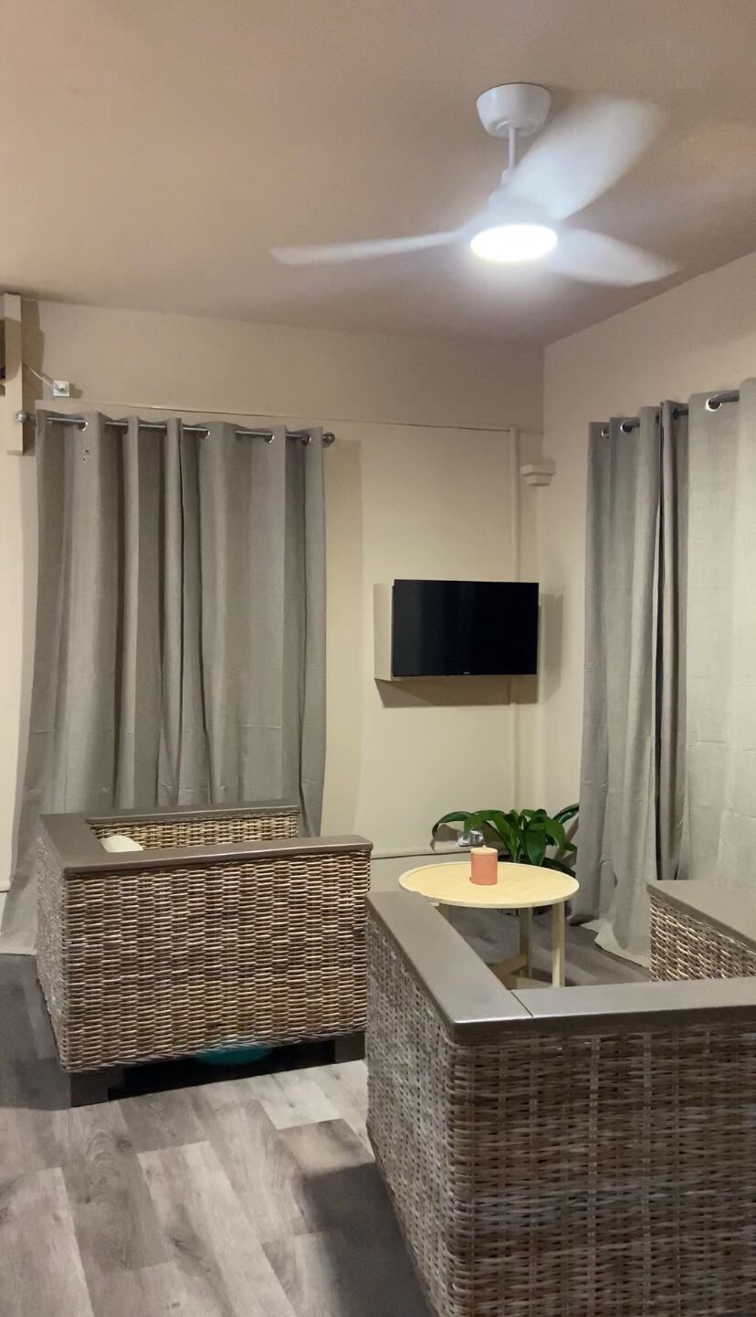 Villa cantik ini berlokasi di properti pribadi, tenang, dan aman 15 menit dari Cayenne dan 5 menit dari bandara. Nyaman dan nyaman, dapat menampung 4 orang termasuk 3 orang dewasa. Tempat ini memiliki kamar tidur ber-AC dengan kamar mandi dan toilet, TV dengan Orange box dan Netflix, ruang tamu dengan sofa bed yang nyaman, dapur lengkap, dan teras berperabot. Akses ke SPA dan kolam renang pribadi gratis. Vila ini memiliki tempat parkir pribadi dan Wi-Fi berkecepatan tinggi.