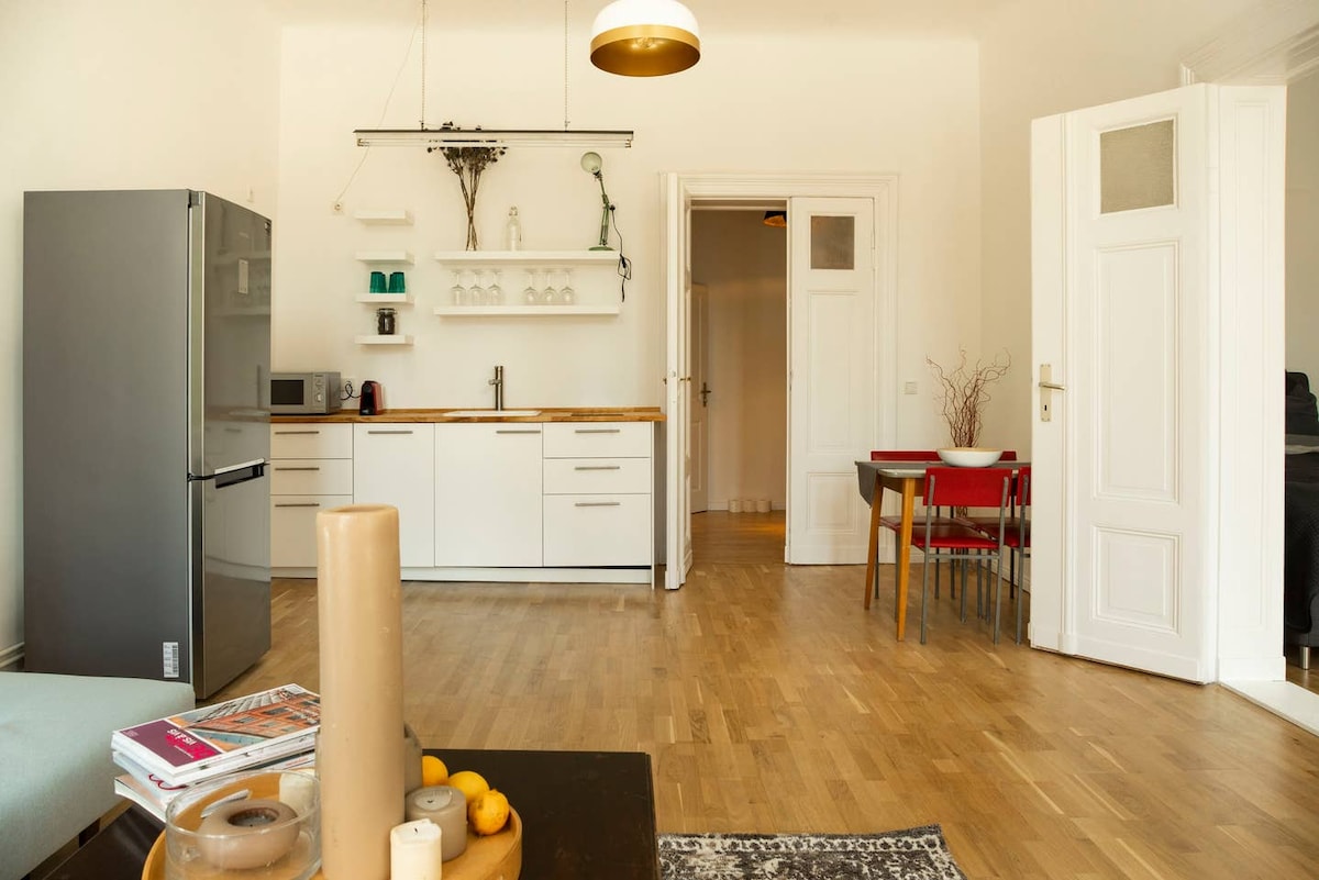 Apartemen eksklusif seluas 85 meter persegi di pusat kota Kreuzberg. Dilengkapi dengan standar tertinggi, hanya beberapa langkah dari Landwehrkanal yang populer namun sangat tenang dan santai - sempurna untuk liburan kota yang santai di salah satu lingkungan tinggal paling keren di dunia. Rasakan budaya, belanja, dan gastronomi di sekitarnya. Koneksi transportasi yang sangat baik.