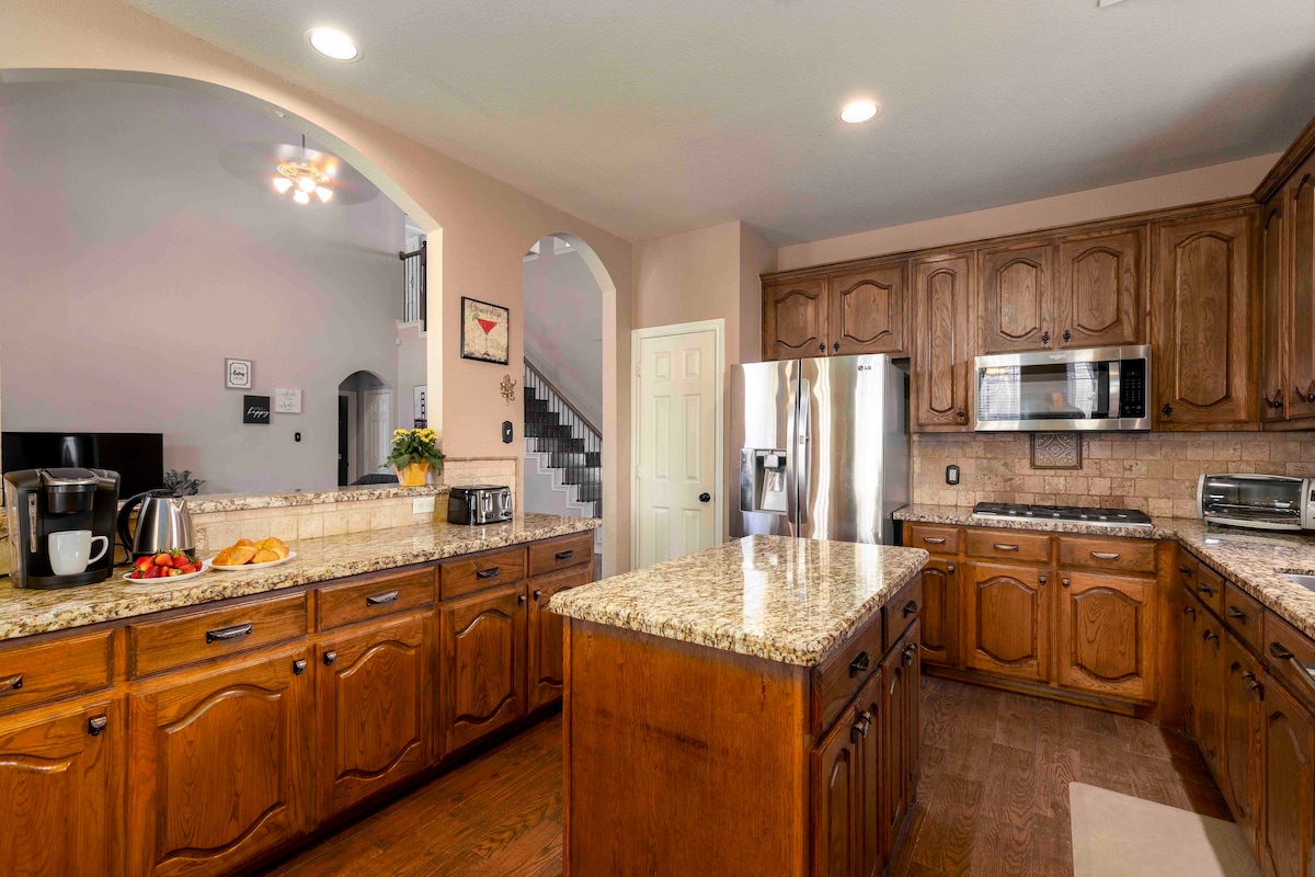 BARU!! Retreat 5 Kamar Tidur Luas dengan Kolam Renang, Meja Bilyar, Arcade & Teater!!! Tidur nyaman 14! Total 7 tempat tidur! Nikmati liburan sempurna ini di pusat kota Frisco! Rumah dua lantai yang indah ini menawarkan segala yang Anda butuhkan untuk masa inap yang tak terlupakan – baik jika Anda bepergian bersama keluarga atau teman. Baik Anda bersantai di tepi kolam renang, bersaing di ruang permainan, atau menikmati malam film yang nyaman, rumah ini dirancang untuk membuat kenangan dan kami tidak sabar untuk melayani masa inap Anda!