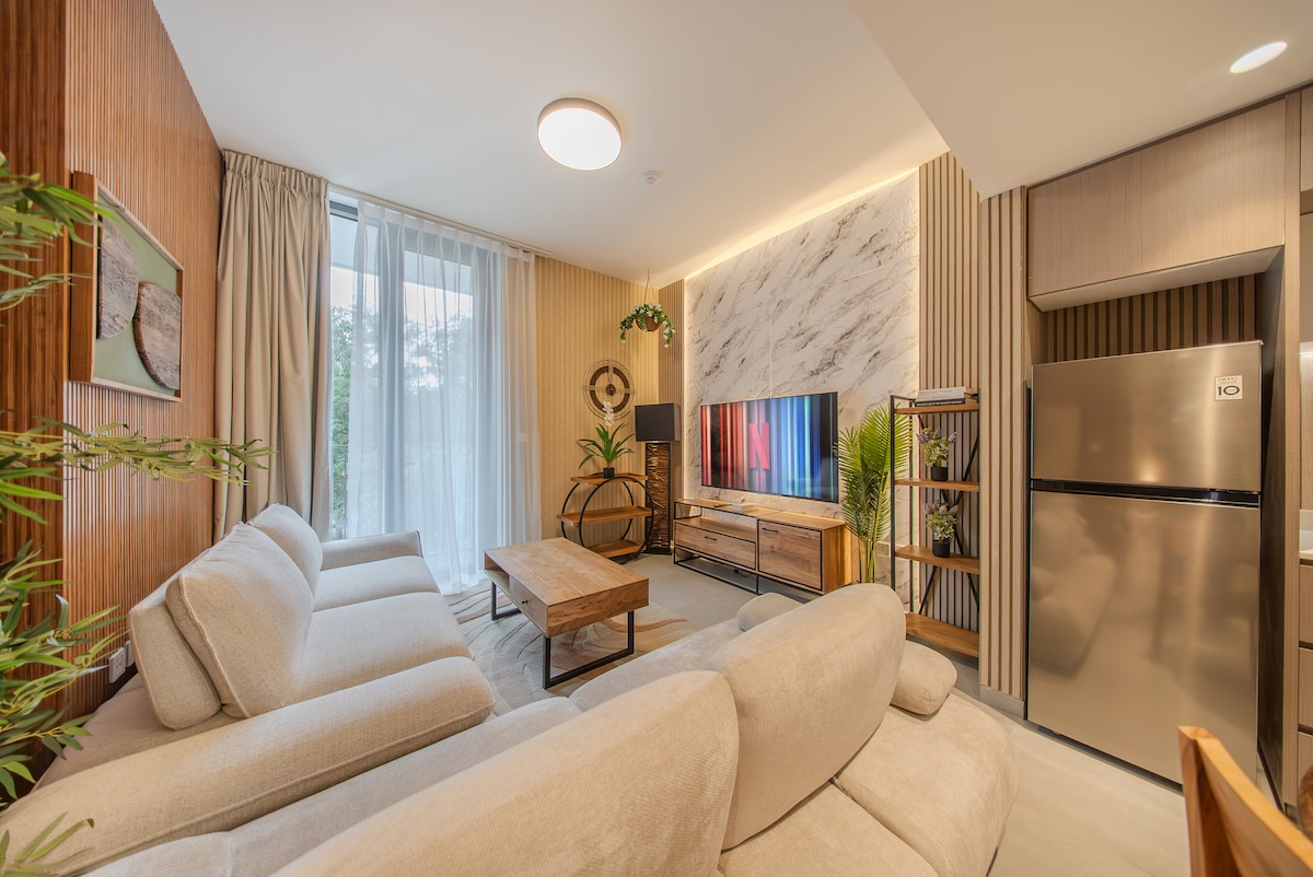 Selamat datang di apartemen 2 kamar tidur kami yang nyaman, dirancang untuk kenyamanan dan kemewahan. Ideal untuk keluarga atau rombongan kecil, setiap kamar menawarkan tempat bersantai setelah seharian berpetualang. Nikmati fasilitas modern, termasuk dapur lengkap dan ruang tamu bergaya. Dengan Wi - Fi berkecepatan tinggi, smart TV, dan suasana yang tenang, nikmati masa inap mewah yang terasa seperti di rumah. Pesan sekarang untuk pengalaman liburan yang lebih baik di tempat peristirahatan elegan kami.