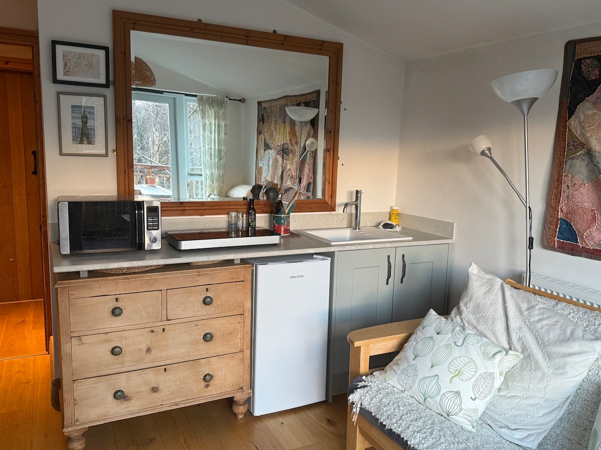 Loteng pribadi yang indah yang merupakan tambahan ke pondok 1830, diakses melalui tangga eksternal. Kamar tidur ganda, kamar mandi & lounge/dapur kecil ke teras dengan pemandangan panorama di Ynyshir & Dyfi Estuary ke Southern Snowdonia. Produk mandi & kebersihan vegan dan ramah lingkungan. Peralatan bayi tersedia gratis dengan permintaan sebelumnya. Bukit, hutan, air terjun, dan lembah yang indah dapat dijangkau langsung dari pintu. Cadair Idris 20 menit. Tautan transportasi umum yang bagus. Parkir di properti dengan fasilitas penyimpanan & pencucian sepeda.