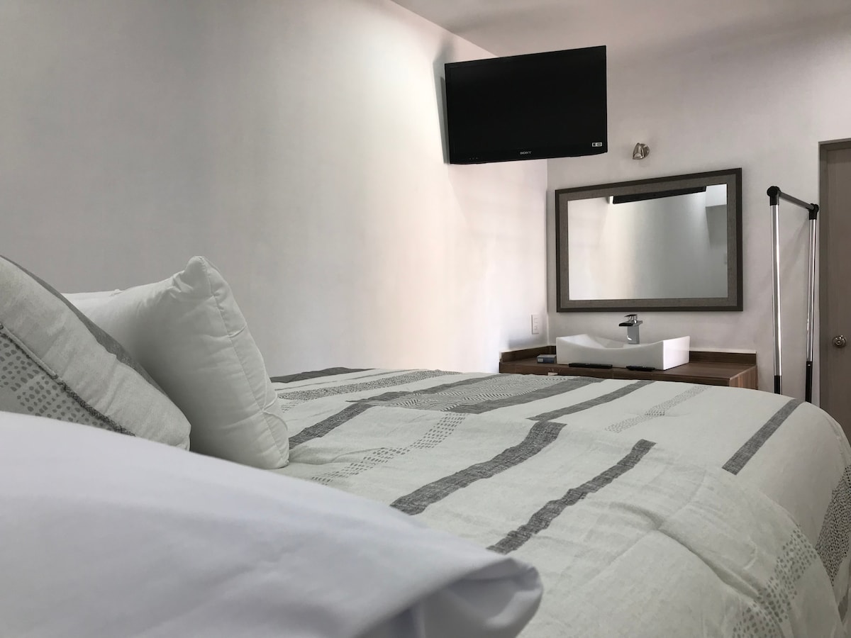Apartemen nyaman yang terletak di lantai tiga (tanpa lift) ini menawarkan kenyamanan dan sangat cocok untuk beristirahat setelah seharian di Mazatlan. Tempat ini memiliki tempat tidur ganda, TV 32", AC, kamar mandi dengan dapur integral dan teras besar. Kualitas terbaiknya adalah lokasinya di daerah yang sangat tenang, dekat Stadion Baseball, Nuevo Aquario Mar de Cortés, Parque Central, dan Playa. Datang dan nikmati masa inap yang menyenangkan di tempat yang menawan dan nyaman ini!