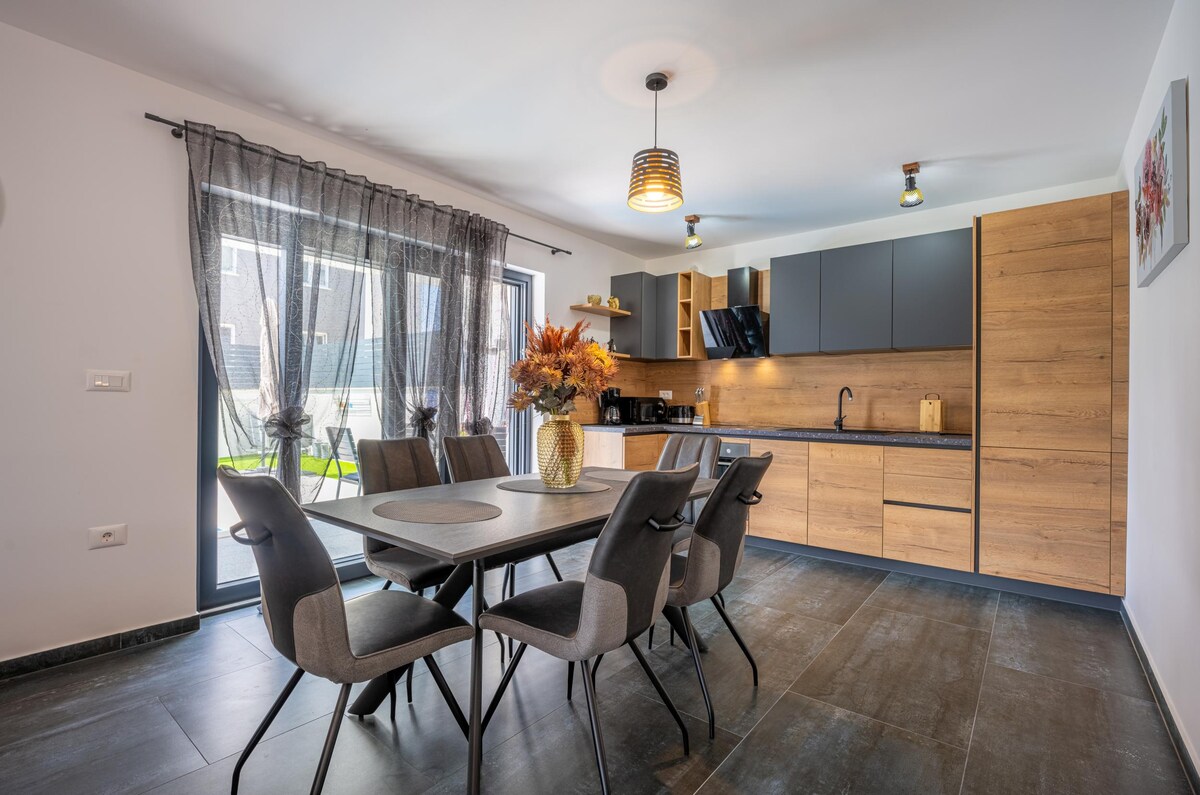 Rasakan relaksasi dan romansa murni di rumah baru kami, yang dirancang khusus untuk pasangan! Bersantai di sauna pribadi, jacuzzi, atau di teras pribadi Anda di samping kolam renang Anda sendiri dan nikmati tamannya. Nikmati malam yang tenang di tempat tidur besar (2,2 m x 2,4 m). Ambil sebotol anggur dingin, atau buat sendiri koktail, minibar tidak meninggalkan harapan yang tidak terpenuhi. Dapur lengkap memenuhi semua kebutuhan kuliner. Kami memikirkan segala yang Anda butuhkan, jadi pesan sekarang untuk waktu yang tak terlupakan. ❤️