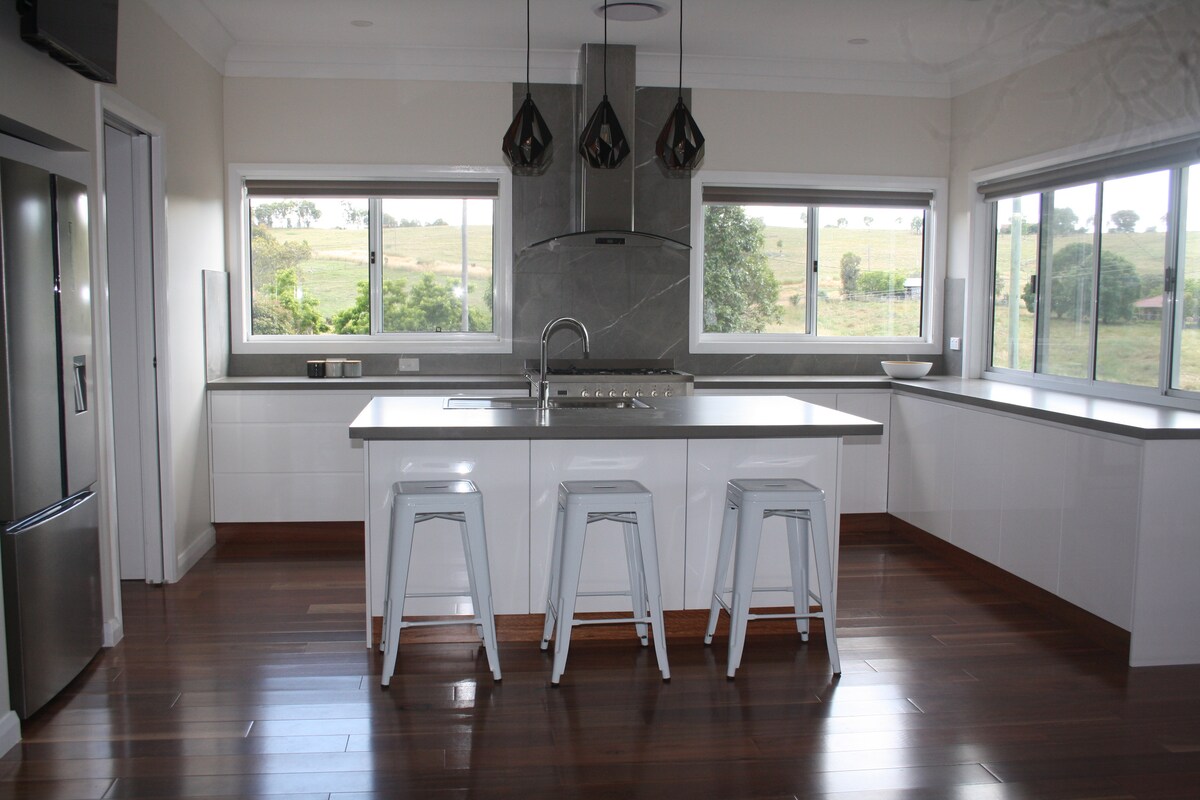 Foxtrotfarmstay is on insta to see a clearer picture of what you will immerse yourself in during your stay. 2 spacious bedrooms, A lux bathroom with free standing bath and a beautiful open-plan kitchen /lounge with magnificent views of folding hills and vast countryside. Unwind and exhale into amazing sunsets with our beautiful Texas long horn cows Jimmy & Rusty or take a walk around the property and explore. Electric blankets on all beds in colder months.AND look out for fox 🦊 on the trot