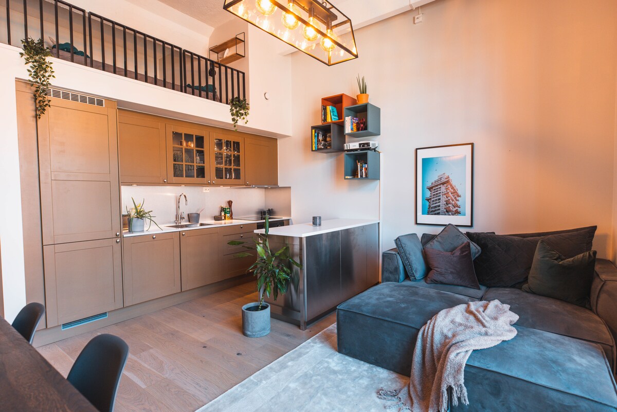 Apartemen ini adalah pabrik tua, dibangun kembali pada tahun 2020 dan memiliki langit - langit 4 meter (13 kaki). Semua yang Anda butuhkan ada di tempat besar kecil yang nyaman dan sejuk ini. Ruang tamu dilengkapi dengan proyektor yang memproyeksikan langsung ke dinding putih besar, dan dengan Chromecast yang terhubung, Anda dapat mengubah ruangan menjadi bioskop. Jendela besar memiliki tirai otomatis yang naik dan turun sesuai keinginan Anda. Ada pancuran besar, dan dapurnya memiliki pendingin anggur.