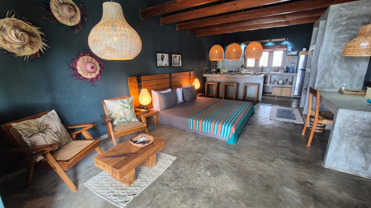 Menginap di rumah standar tinggi yang asli ini yang terletak di tengah hutan dan dengan pemandangan laut adalah pengalaman yang benar - benar unik. Kami mengundang tamu kami untuk datang dan meremajakan diri, terinspirasi, dan merasa nyaman. Dapatkan terbuai oleh suara Samudra Hindia, dan nikmati pemandangan yang luar biasa di atas lautan, dikelilingi oleh pohon kelapa dari kamar tidur Anda. Rumah kami adalah petualangan yang sempurna untuk wisatawan yang ingin merasakan pelarian tepi pantai, jauh dari kota yang ramai.