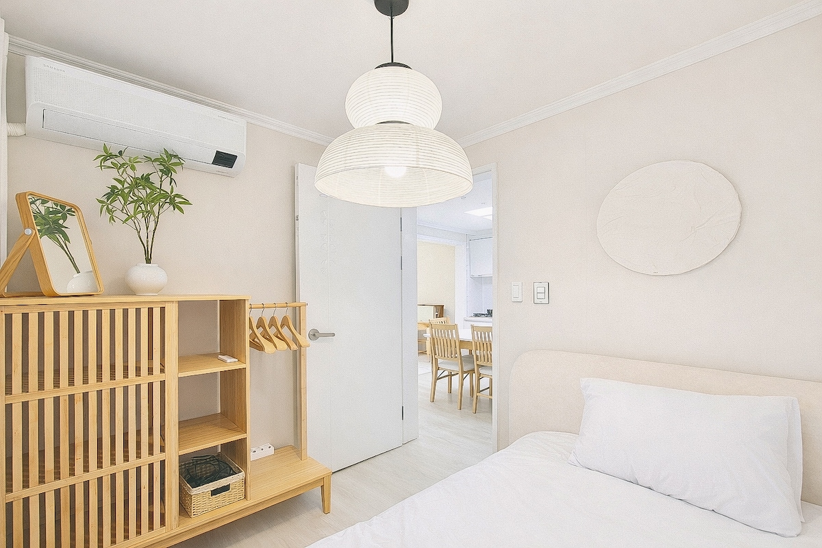 Penginapan yang Sangat Nyaman 🍃 Ruang yang nyaman dan modern yang dibangun oleh seorang fotografer, tepat di samping Bandara Gimpo ✈️ Ideal untuk bisnis, perjalanan, dan relaksasi 🌿 Lokasi: Gonghang-dong, Gangseo-gu, Seoul (5 menit berjalan kaki dari Stasiun Songjeong) Tipe Properti: 3 kamar + ruang tamu yang nyaman / gedung baru / termasuk lift Hunian Maks: 6 tamu (1 Queen + 3 Super Single) Parkir: 1 mobil di dalam gedung (mobil ekstra di tempat parkir berbayar terdekat) 🔒 Fasilitas: CCTV keamanan 24/7 / Wi-Fi berkecepatan tinggi / Netflix & YouTube