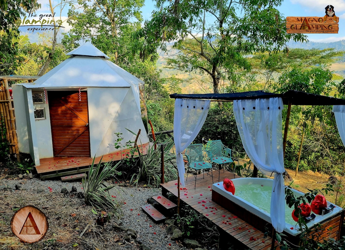 Selamat datang di Glamping Caelum! Di mana kenyamanan bertemu dengan ketenangan. Rasakan liburan yang damai di tengah-tengah alam yang paling semarak. Nikmati mendaki ke air terjun atau berjalan-jalan melalui pemandangan alam di samping kabin. Kami berada di dekat Bogotá dan sumber air panas Machetá Cundinamarca. Liburan impian Anda menanti Anda di Caelum! ✨🌿 Penginapan Anda sudah termasuk sarapan dan layanan minibar. Jacuzzi tenaga surya tersedia, gunakan sekali untuk setiap malam yang dipesan.