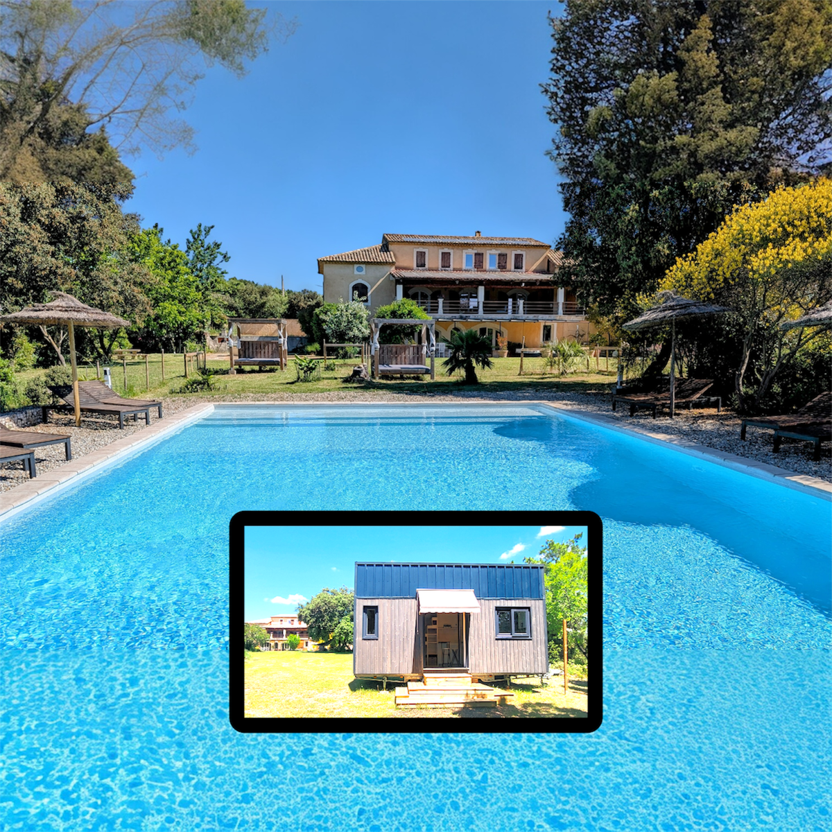 Chalet kayu di atas bukit seluas 25 meter persegi dengan kamar mandi dan dapurnya yang lengkap. Anda akan menemukan semua peralatan memasak dasar serta ketel, perkolator, pemanggang roti, dan kulkas... Area taman kecil di depan pondok dengan meja luar ruangan disertakan dalam proposal. Parkir pribadi dan aman. Ruang relaksasi (kebugaran dan meja biliar) Sebuah boulodrome, meja pingpong, permainan papan, perpustakaan. Tersedia BBQ. BBQ.