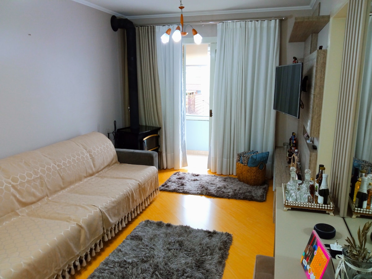 Apartemen nyaman yang terletak di pintu masuk kota di Avenue utama, di samping Garibaldi Winery, satu blok dari alun - alun stasiun kereta Maria Fumaça. Apartemen lengkap semua dilengkapi dengan Perapian, BBQ, dua tempat parkir, pasar dengan tukang daging/mangkuk buah/toko roti di depan. Berada di sebelah Casa do Tim - tim, 2 menit ke Trattoria Primo Camilo Restaurant, 16 menit ke Historical Center, Jardim Gastronômico Café Luna Park, Bar Joe , 12 menit ke Peterlongo Winery.