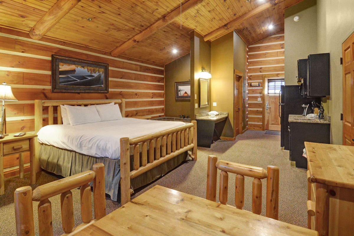 Yang disukai tamu dari kedua unit ini adalah memiliki dua kamar mandi besar, 768 SF unit di dua lantai dengan dapur kecil, area duduk ruang tamu dengan TV layar datar sendiri di atas perapian yang nyaman. Perhatikan, Anda dapat mendengar tetangga sebelah Anda saat berada di kabin dupleks. Loteng di kabin ini memiliki tempat tidur queen dan kamar mandi lengkap.