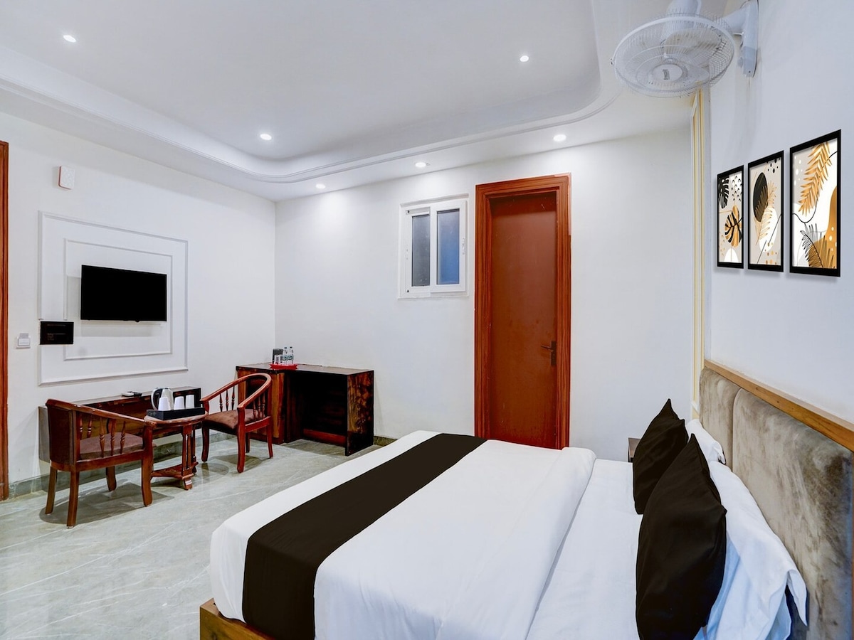Nikmati Kamar Hotel Mewah kami dengan Balkon di Sector 57, Gurgaon. Hanya beberapa menit dari Rumah Sakit Artemis, Jalan Lapangan Golf, dan Sektor 54 Chowk Metro, tempat ini menawarkan akses tanpa batas ke kota ini. Sangat cocok untuk masa inap medis, bisnis, dan liburan, kamar ini menggabungkan kenyamanan modern dengan keanggunan. Berlisensi untuk menerima tamu warga negara asing. Check - in lebih awal akan tergantung pada ketersediaan dan dikenakan biaya Rs.500 serta check - out terlambat juga akan sama dengan ₹ 500 ditambahkan untuk setiap 3 jam setelahnya.
