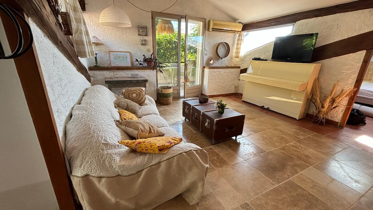 Sebuah vauvert, di Camargue kecil, antara Nimes dan Montpellier dan 25 menit dari laut. Apartemen tempat kami menyambut Anda bersebelahan dengan rumah kami, di Zona Vauvert Industri, 5 menit dari St Mamet dan 10 menit dari Perrier. Studio seluas 20 m² yang bagus dilengkapi dengan AC, teras pribadi, dan tempat parkir di depan studio. Area ini tertutup oleh gerbang listrik