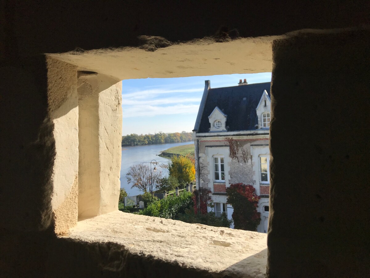 Logis Escale is an unusual 16th-century house that we have just renovated from top to bottom. Today, it comprises three floors with five bedrooms, five bathrooms, a small garden, a roof top, and a semi-underground swimming pool. The grounds are enclosed and secure. Wake up to the sunrise over the Loire and go to bed after one last view from the roof top over the Prieurale de Cunault. An unforgettable stay with family or friends awaits you!