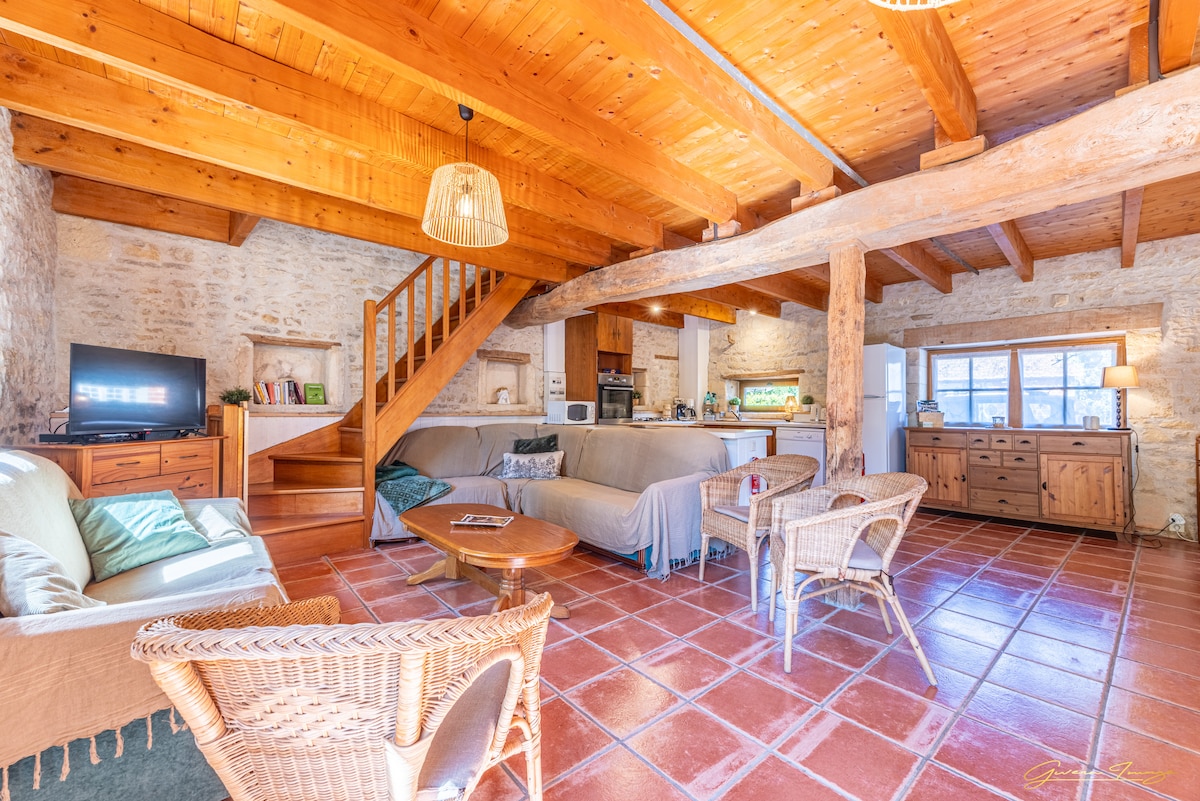 Gîte bintang 4 yang menawan di Charente Maritime. Musim dingin di dekat perapian, musim panas di tepi kolam renang! Kami menawarkan 3 Gîtes untuk dua orang di Logis des Chauvins, termasuk Garden Gîte. Logis des Chauvins abad ke -18 berada di jantung taman seluas satu hektar di Port D'Envaux, bekas desa pelayaran. Lokasinya yang istimewa di tepi Charente membuatnya sangat menarik, dengan banyak jalan kaki, berenang, dan olahraga air yang hanya berjarak 3 menit berjalan kaki...