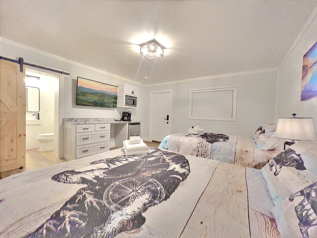 This airy and bright carriage house studio is nestled on a quiet street in the heart of Virginia-Highland, one of Atlanta's most popular neighborhoods. Just blocks from Piedmont Park, Atlanta Botanical Gardens, the Beltline, Ponce City Market, and many restaurants and bars. Only 2 miles from the Emory, Georgia Tech, and Georgia State campuses. This studio apartment has a queen-sized bed, bathroom, large desk, and sitting area with a coffee maker, refrigerator, and microwave.