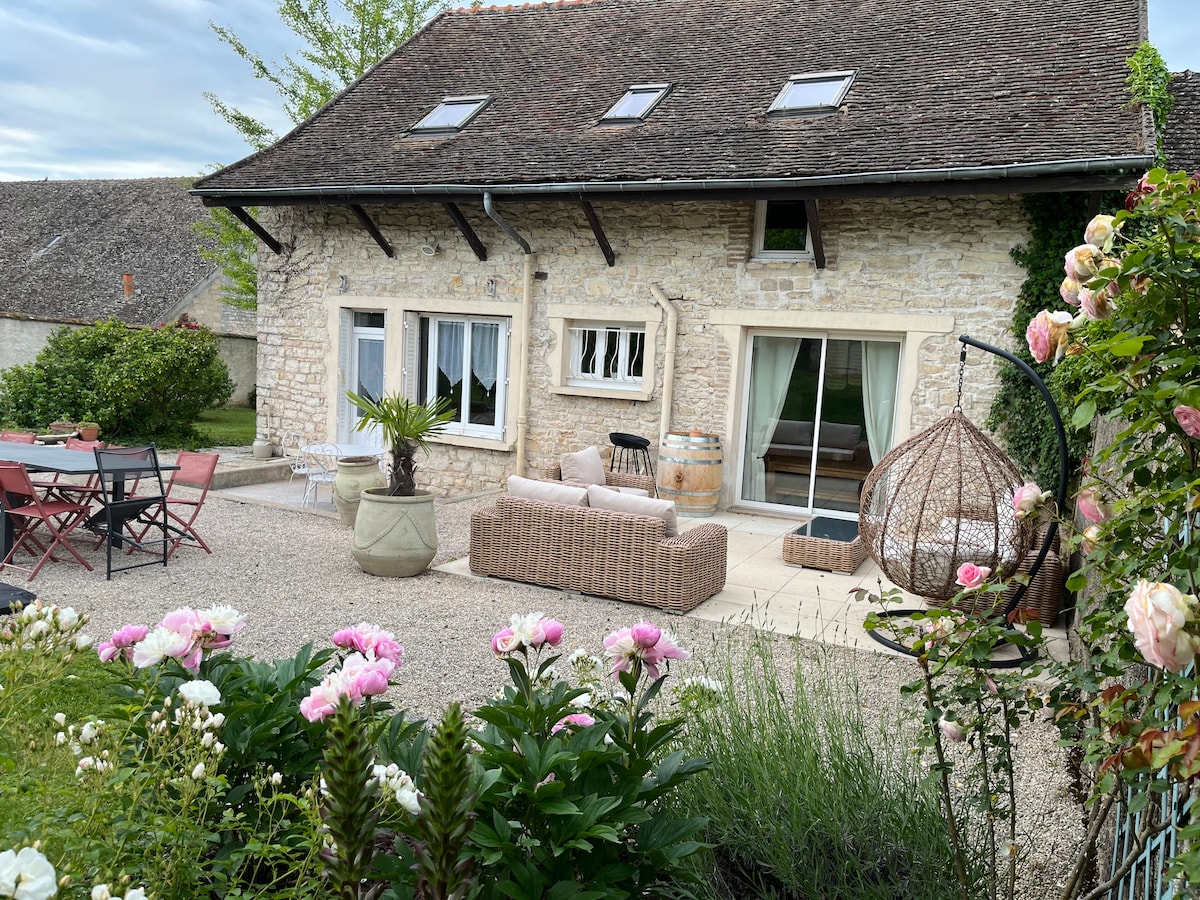 Dekat Beaune , qq km dari rute anggur,Anda bisa menikmati masa inap yang santai dan tenang di "la ptite maison" Rumah tua yang direnovasi ideal untuk 1 orang atau 1 pasangan. Kamar utama dengan sofa area tempat duduk ( tidak bisa digunakan sebagai area tidur) wifi dan area makan. Kamar ini dipisahkan oleh 1 kanopi di mana terdapat double bed, lemari pakaian. Dapur lengkap .1 kamar mandi dengan 1 pancuran ,kering handuk , wc. Kursi payung meja luar ruangan