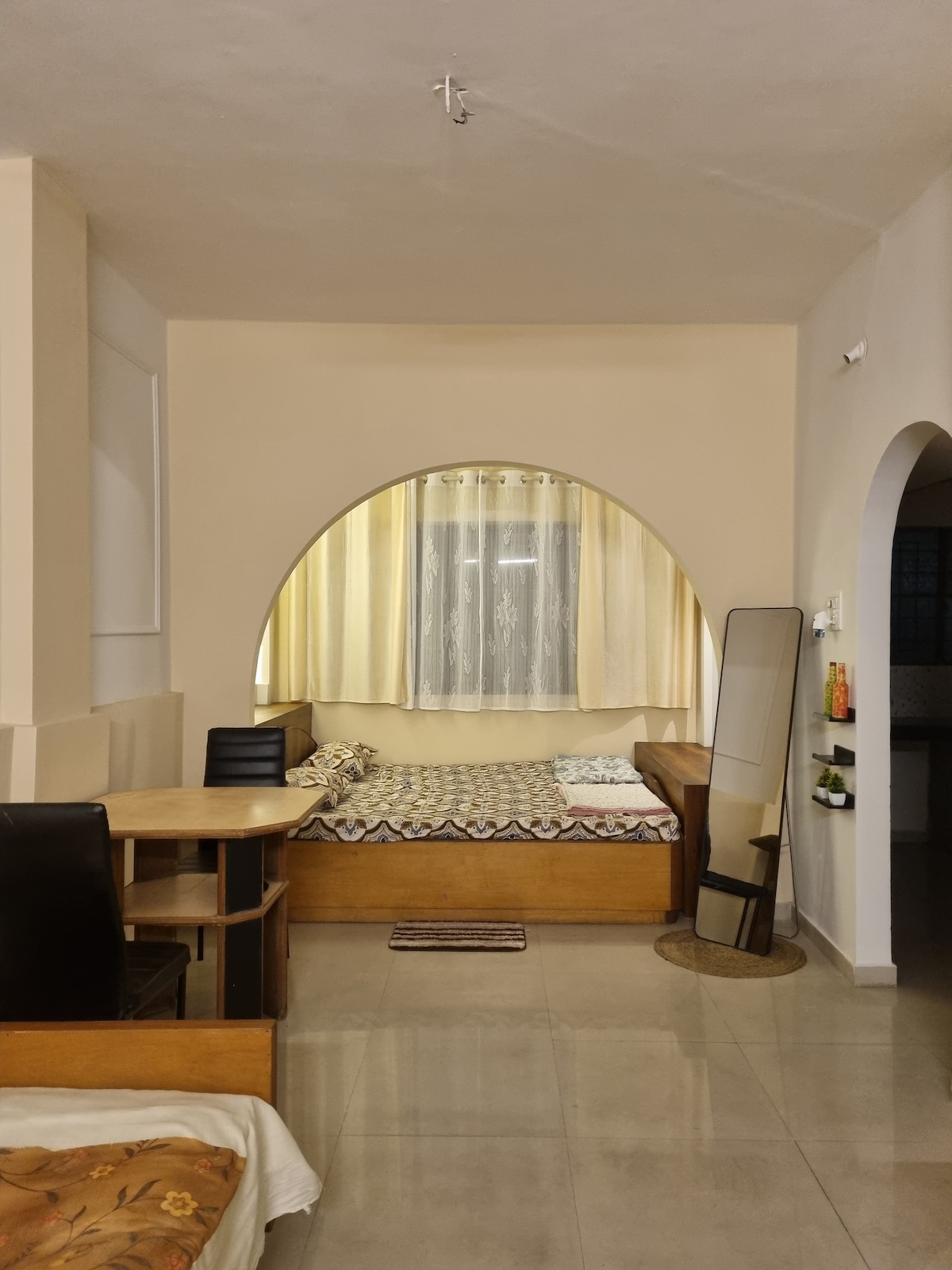 Ini adalah area atap yang memiliki kamar RCC ber - AC tunggal dengan kamar mandi dalam dan area teras tertutup penuh tempat Anda dapat menikmati tanaman hijau yang menyenangkan dan udara segar di pusat kota. Pilihan yang bagus untuk rombongan 1 -6 orang (pasangan yang belum menikah tidak diizinkan). Lokasinya berada di daerah Bibwewadi. Keluarga saya menginap di lantai satu dan kamar ini berada di lantai dua sehingga aman bahkan untuk wanita karena keluarga kami akan tinggal di lantai bawah dan kami akan berada di sana untuk bantuan apa pun yang diperlukan. Minum & Pesta tidak diizinkan.