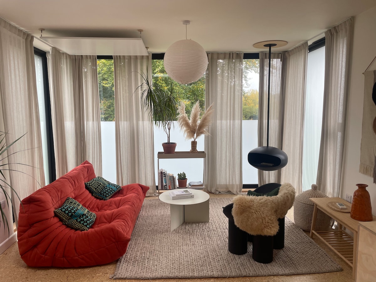 The house that Jeremy built.... and Lisa filled with sewing stuff! Designed and built by Jeremy as a wood workshop which was swiftly outgrown so it was remodelled as our home office with mezzanine floor, large ground floor window, insulation and heating. A second remodel took place summer 2022 to add a bathroom for guests to visit in this self contained versatile space with two double beds is suitable for a couple, 2 adults or family of 4 (older children). read on for more information-