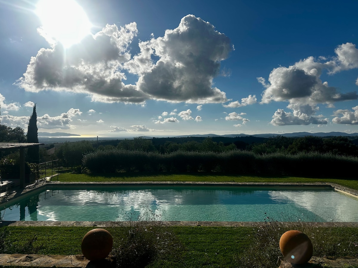 Di pedesaan Maremma, kolam renang panorama pribadi, dengan 360 °!!! Pemandangan Argentario, pulau Giglio, dan desa abad pertengahan. Matahari terbenam yang spektakuler untuk dikagumi! Vila ini berada di satu lantai, ditandai dengan balok kayu yang terbuka, beranda, lantai terakota buatan tangan, furnitur minimalis yang elegan. Tempat ini bisa menampung hingga 6 orang. Taman seluas 2 hektar dengan kebun zaitun dan pohon ek berusia berabad - abad. Terletak 5 menit dari desa Pereta yang indah.
