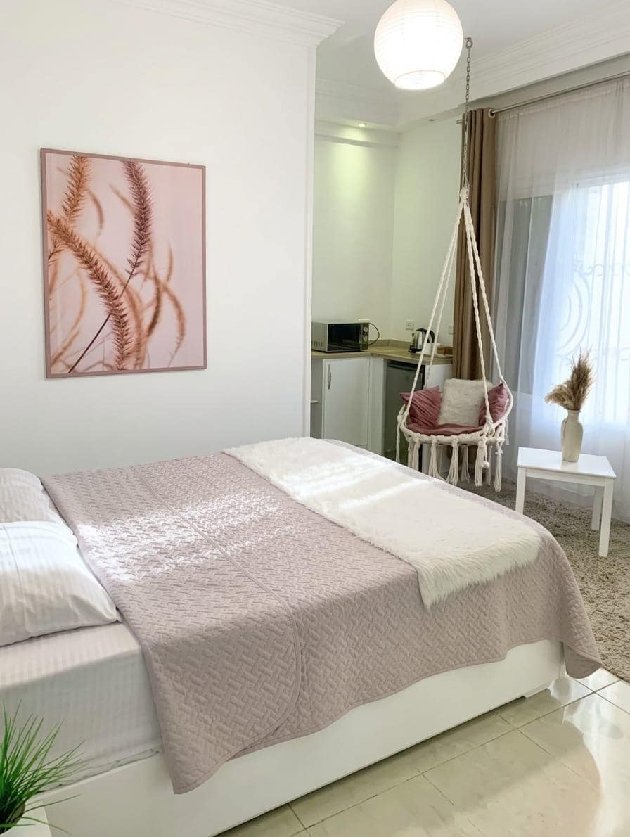 The Free Spirit's Escape — sarang StayBee yang terinspirasi boho yang dipenuhi tekstur, warna, dan cahaya lembut. Nikmati bak mandi mewah dengan pemandangan kota, kamar mandi pribadi, minibar, Smart TV, pembuat kopi & ketel, AC, dan Wi-Fi cepat. Check-in mandiri✔ 24 jam ✔ Seprai berkualitas hotel ✔ Pembersihan setiap hari tersedia ✔ Kamar yang tenang meskipun lokasinya di pusat kota Wi - Fi✔ Cepat (200 Mbps) 📍 Pusat Kota Kairo • langkah menuju Museum Mesir • Jarak berjalan kaki ke restoran • 30 menit ke Piramida & Bandara