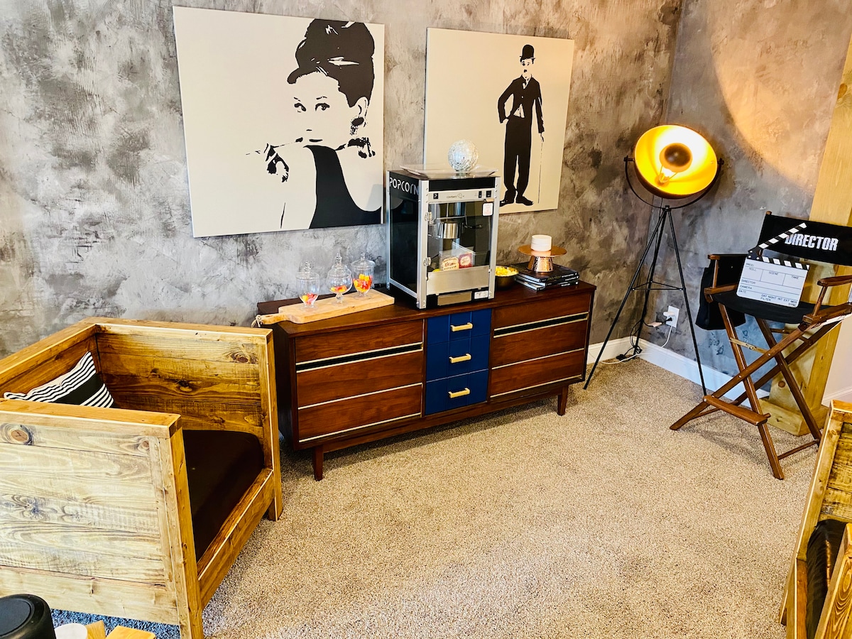 Your private CINE-PLEX! Club Gym, FIVE Amazon Fire TVs, 3 KING beds, Master Suite, 110in screen, 3-tier seating, smart lighting in every room, whole-home audio, XBOX Series S, Alexa! Easy PARKING right at the front door. YouTube Video Tour search Guelzo Experiences. Created for you by a sound designer whose resume includes Fast & Furious 7, Robocop, and more! We love movies and want to share something only a professional’s touch could craft, a multiplex viewing experience!