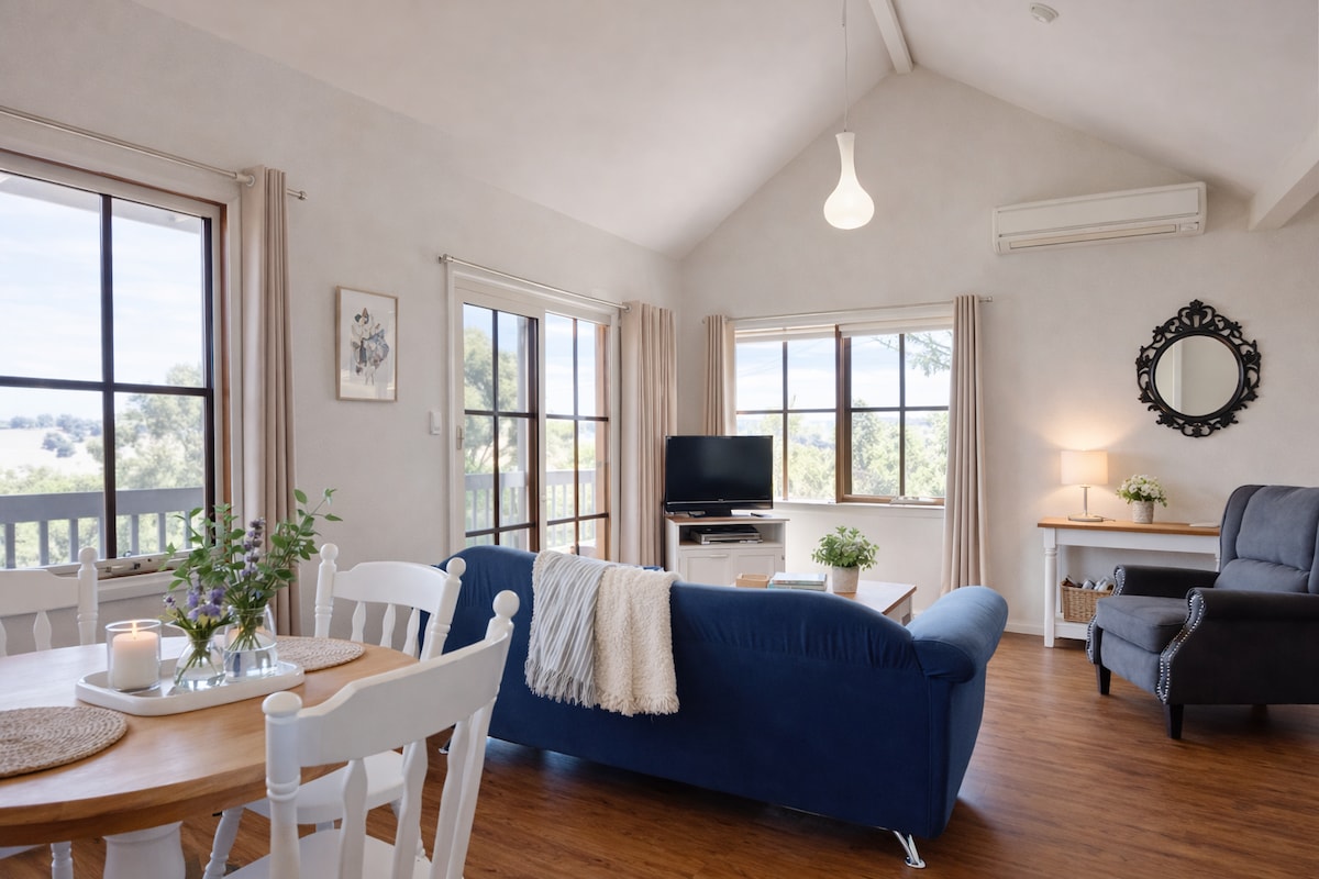 Hanya Chalet mandiri yang menghadap pemandangan spektakuler perbukitan Blackwood River Valley, namun hanya berjarak 5 menit berjalan kaki dari kota Balingup yang indah, di mana Anda akan menemukan kafe, toko, dan tempat wisata, seperti taman pohon Golden Valley yang terkenal, pabrik Old Cheese, Lavender Farm dan banyak lagi. Duduklah di balkon Anda dan nikmati pemandangan dengan segelas anggur dan lihat hewan - hewan penyelamat kami merumput di rumah mereka selamanya dan menyaksikan matahari terbenam di atas Farmstay kami.