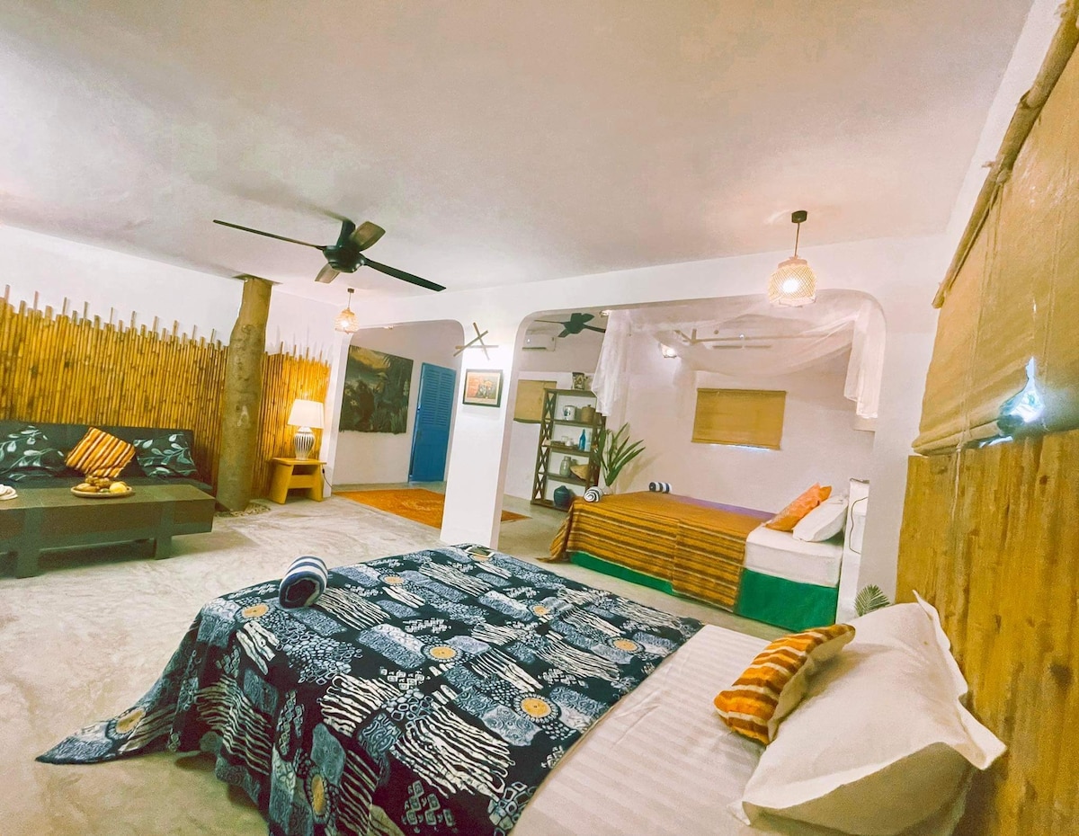 Homestay yang luas, nyaman, dan terhubung dengan alam. Ruang untuk bersantai atau melakukan apa pun yang menyehatkan pikiran dan tubuh Anda. Apartemen berada di lantai 2, dilengkapi dengan ruang tamu besar, kamar tidur, kamar zen (bisa menjadi kamar tidur ke-2 jika Anda memesan dari 3-4 tamu), dapur, kamar mandi luas dengan bak mandi dalam ruangan dan pancuran luar ruangan, balkon pemandangan sungai besar. CATATAN: - Jika memesan 1 -2 tamu: 1 tempat tidur - Jika memesan 3 -4 tamu: 2 tempat tidur - Jika memesan 1 -2 tamu tetapi membutuhkan 2 tempat tidur: harga ekstra adalah 250.000vnd/malam