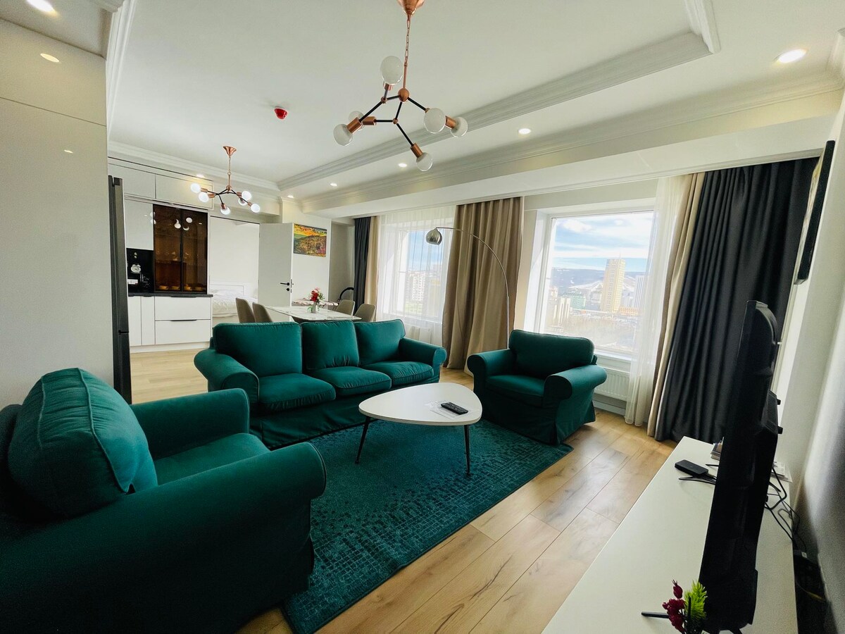 Ini adalah apartemen baru full furnished berlokasi di pusat Ulaanbaatar, 400m dari Istana Pemerintah, alun - alun Sukhbaatar, 300m jauh dari museum Chinggis khaan, 100m jauh dari kantor PBB. Di dalam dan di luar gedung, setiap lantai memiliki CCTV, tempat yang sangat aman dan nyaman di tengah UB. Anda dapat menyaksikan jalan - jalan utama kota Ulaanbaatar dari balkon Anda, berbicara dengan pasangan Anda dengan minum anggur.