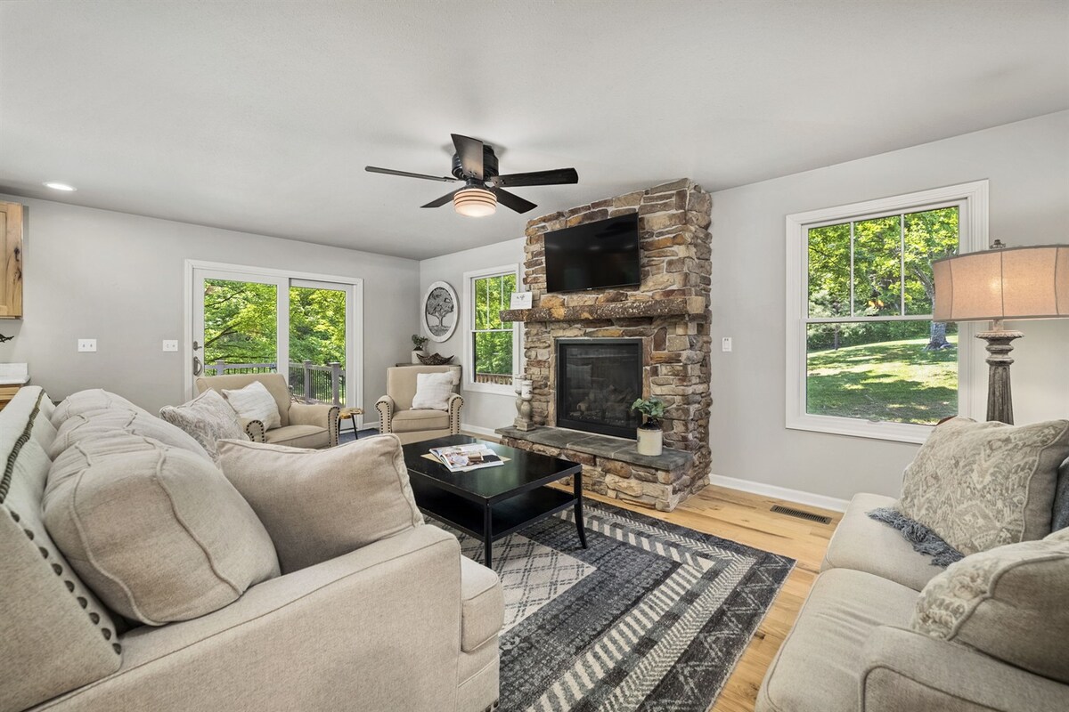 Ruang khusus ini berada di tengah Hutan Nasional Shawnee, hanya berkendara sebentar ke lintasan lintas alam, air terjun, panjat tebing, kayak, dan berkuda yang indah. - Menunggang kuda berpemandu ke jalur Shawnee tersedia melalui tuan rumah, Sue - Kandang tersedia untuk kuda Anda sendiri - Tempat tidur 4 queen dan sofa tarik - Mesin cuci dan pengering - Wi - Fi Optik Serat - Pemanggang gas, tempat duduk luar ruangan, perapian besar, dan kayu bakar gratis di lokasi - Garden of the Gods, Jackson Falls, Bell Smith Springs Burden Falls di dekatnya