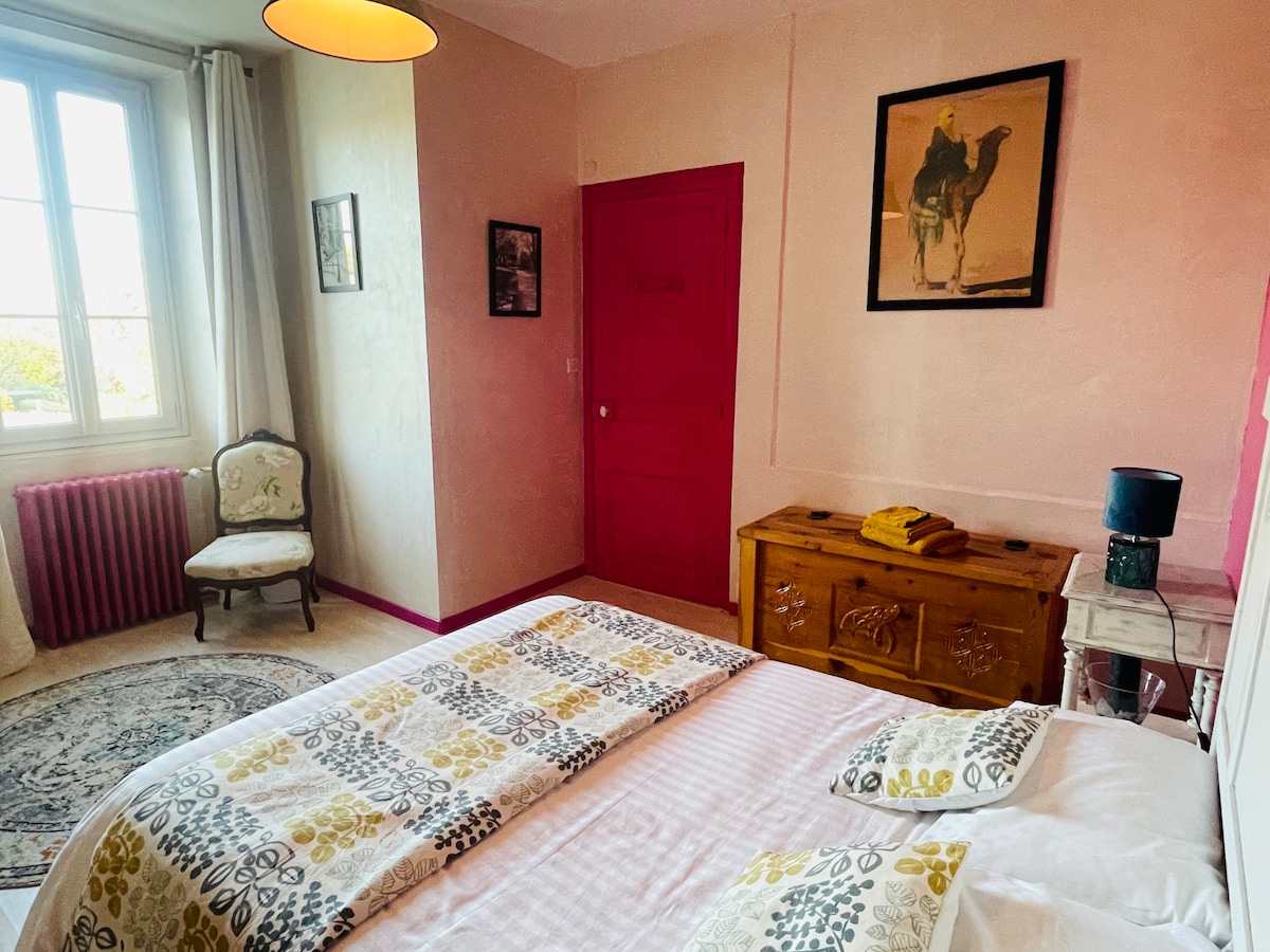Kamar menawan kami seluas 35 m2 dengan mezzanine menyambut Anda dengan kesederhanaan dan kehangatan. Kamar benar - benar direnovasi. Pintu masuk independen, kamar mandi pribadi dengan shower walk - in. Sarapan (+8 euro) disajikan di kamar Anda atau mengapa tidak di teras kapan dan kapan memungkinkan! Kami berjarak beberapa menit dari La Rochefoucauld di gerbang Périgord, 2 km dari Chemin de Compostelle, 20 menit dari Angoulême, kaya akan sejarah dan acara budaya.