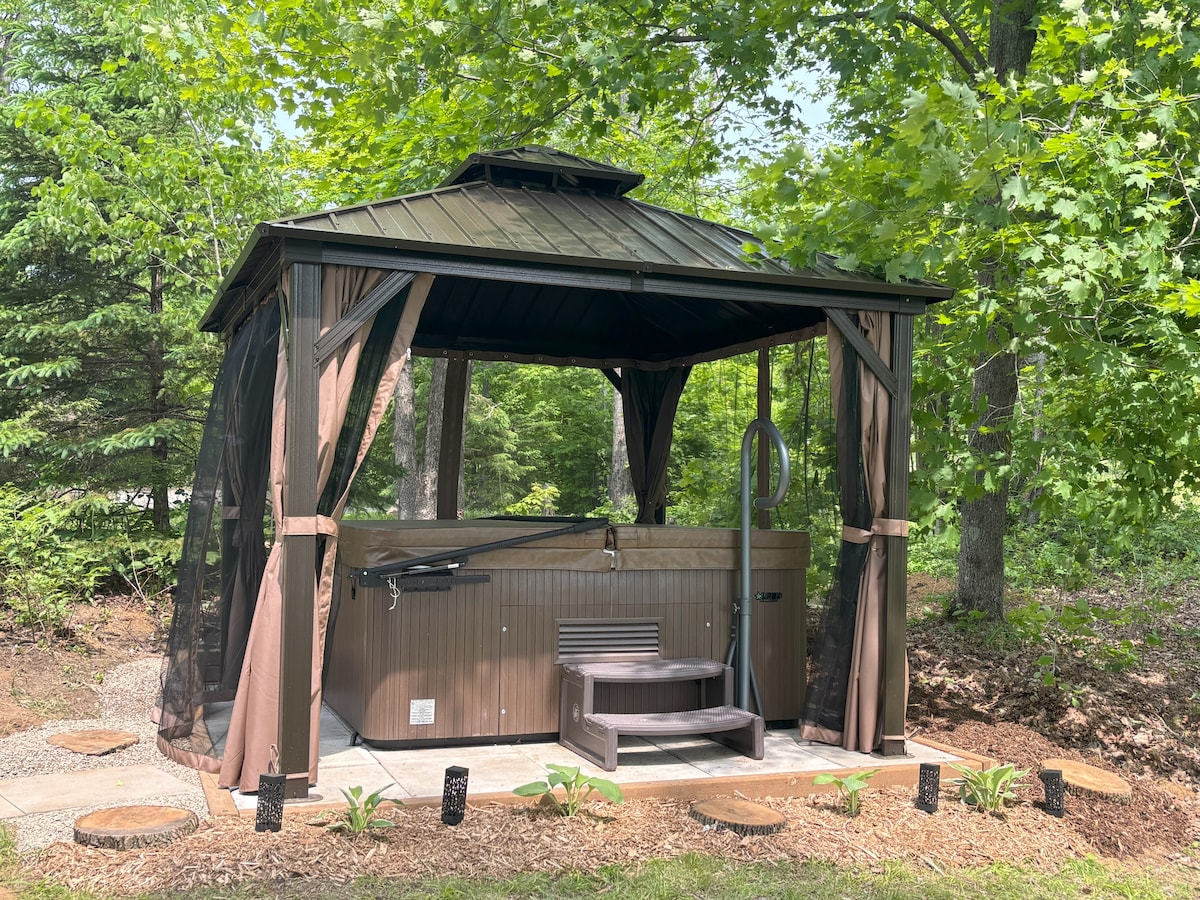 Pondok empat musim, di Sungai Irondale. Nikmati kemewahan seperti lantai kamar mandi yang dipanaskan, bak mandi berendam, dapur modern, mesin cuci/pengering. Langit-langit dan jendela yang tinggi memungkinkan alam masuk. Keluarlah ke surga, bersantai di dekat api unggun, mendayung, atau berenang di sungai. Tiga kamar tidur: King, queen, double, ditambah 2 kursi Bean Bag yang berubah menjadi kasur. Sangat cocok untuk keluarga atau liburan romantis. Nyaman untuk 6 tamu. BARU - STARLINK INTERNET!!