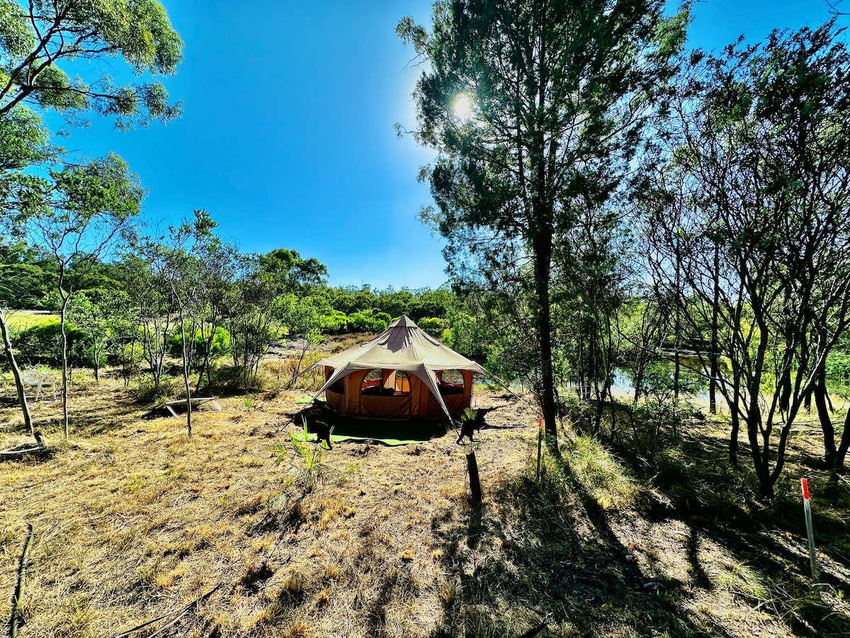 Berliburlah ke ketenangan alam dan nikmati tempat peristirahatan kami yang mempesona di Coolmunda Organics. Tidur di tengah hutan Australia yang indah di antara kebun zaitun di dekat Danau Coolmunda saat malam tiba menikmati atap yang jernih dan melihat bintang sepanjang malam sambil mendengarkan semua suara alam Masuklah ke tempat perlindungan nyaman Anda yang menampilkan tempat tidur queen size, handuk, lounge, dan listrik. Kami memiliki dapur di dekatnya dengan semua kebutuhan memasak dan kebersihan, serta pancuran dan blok toilet lengkap.